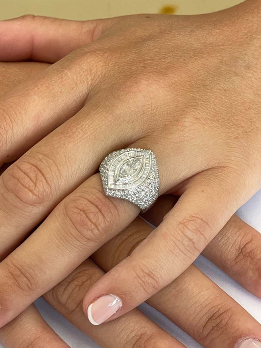 HENARES marquis ring in 18k white gold with diamonds and baguettes