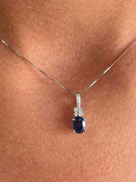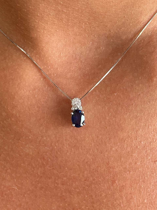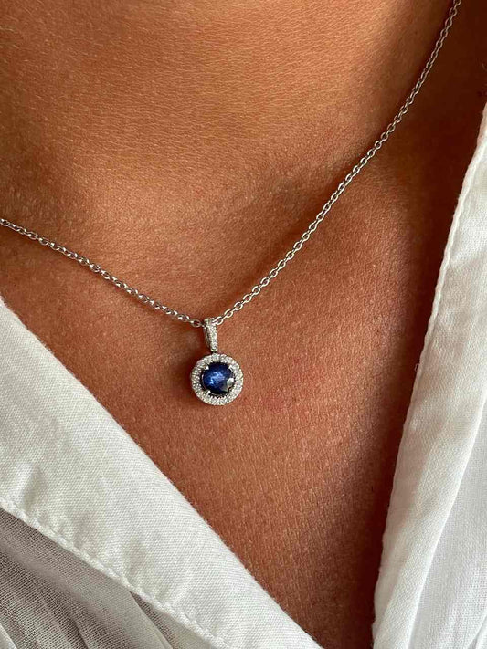 GAMBOA pendant, 18k white gold charm with diamonds and sapphire.