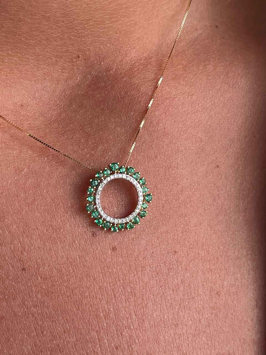 CIRELA pendant in 14k yellow gold with diamonds and emeralds