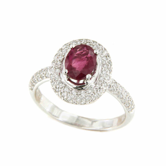 ECHO, 18-karat white gold ring with diamonds and emerald or ruby