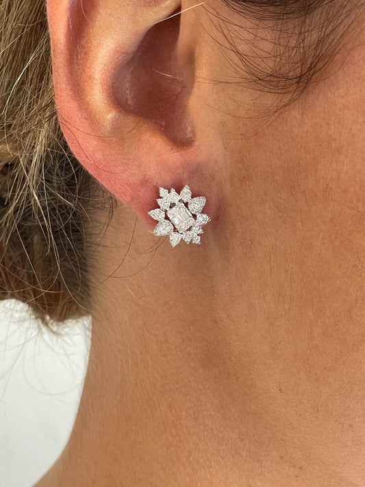 CAIMITO star earrings in 18k white gold with diamonds and baguettes