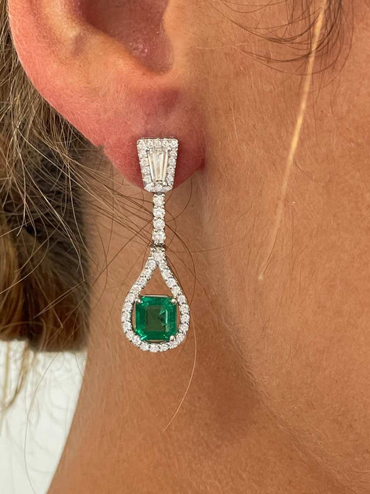 PERSIMO long earrings in 18k white gold with emeralds and diamonds