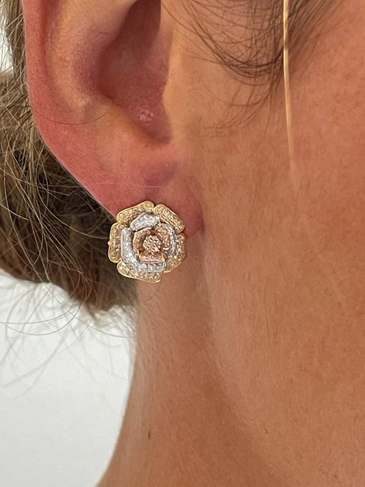 LIMA flower earrings in three colors 18 karat gold with diamond