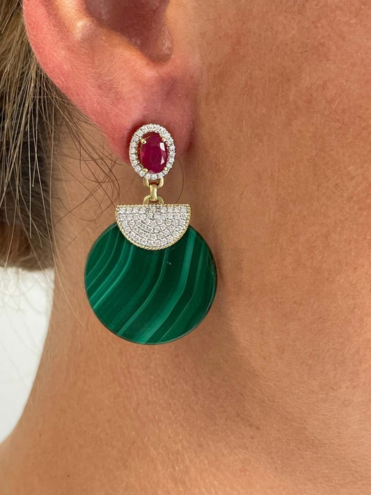 AGUAJE earrings in 18k yellow gold with ruby, malachite and diamonds