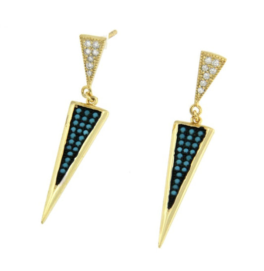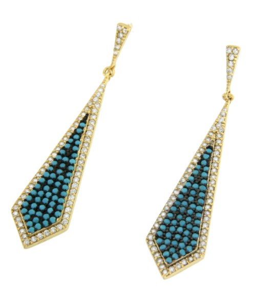 Long silver earring with gold plating, cubic zirconia and turquoiseRegular price 110,00€Regular priceUnit price per-