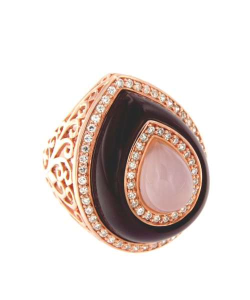 AMBROSINE, rose silver ring with onyx and white agate.
