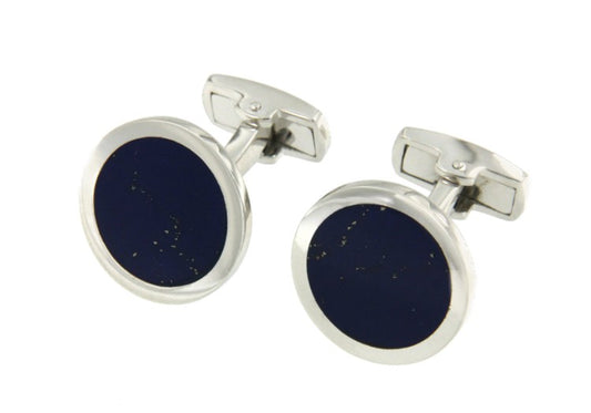 Men's cufflinks in silver, round shape and lapis lazuli.