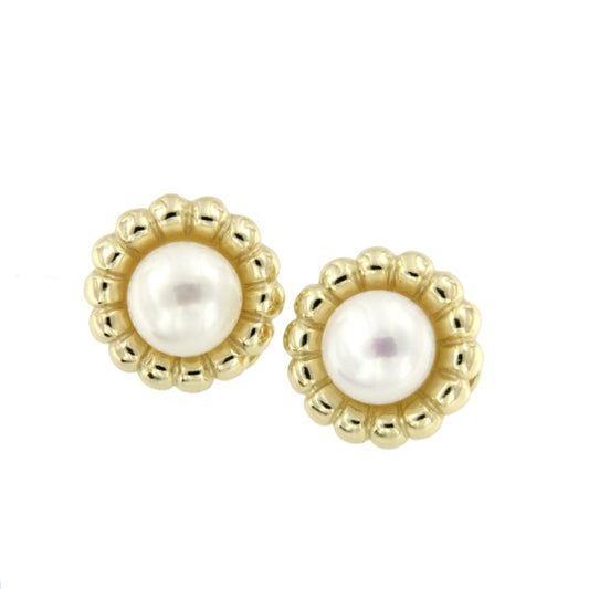 Short silver earrings with gold plating and pearls