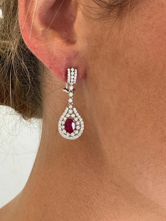 Mandarin long earrings in 18k white gold with rubies and diamonds