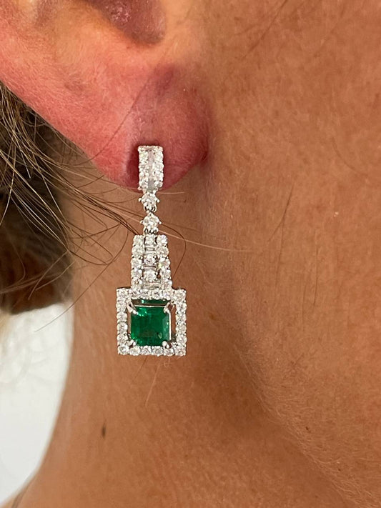 PERSIMO long earrings in 18k white gold with emeralds and diamonds