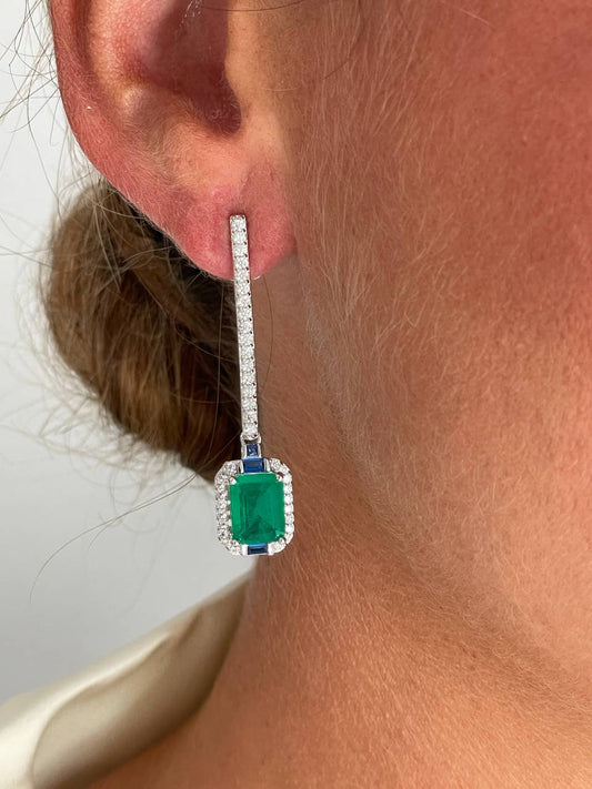 Long ZOE earrings in sterling silver with cubic zirconia and emerald quartz
