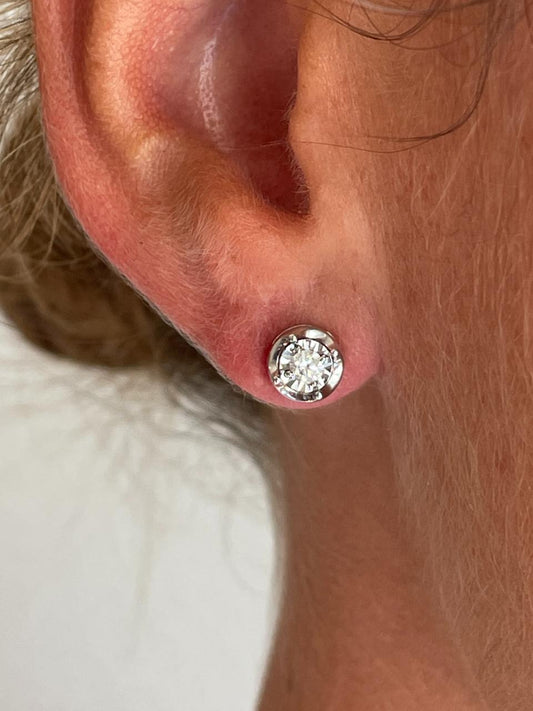 GUANA stud earrings with diamond studs and claw setting in 18k white gold.