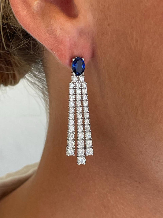PENZA long earrings with diamonds and sapphires in 18k white gold
