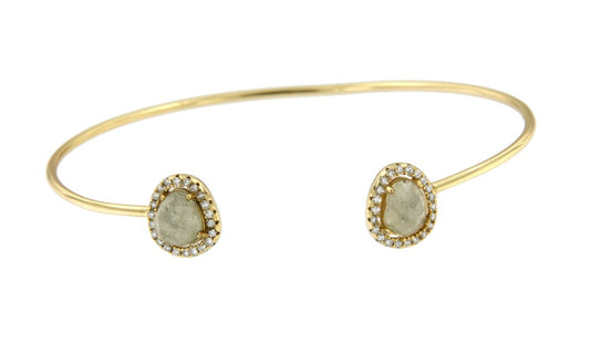 Rigid bracelet "You and Me" in silver with gold plating and labradorite