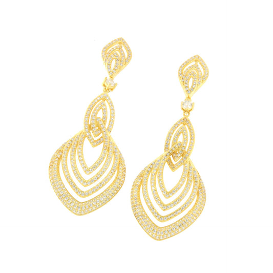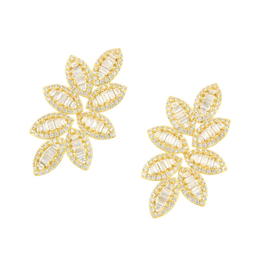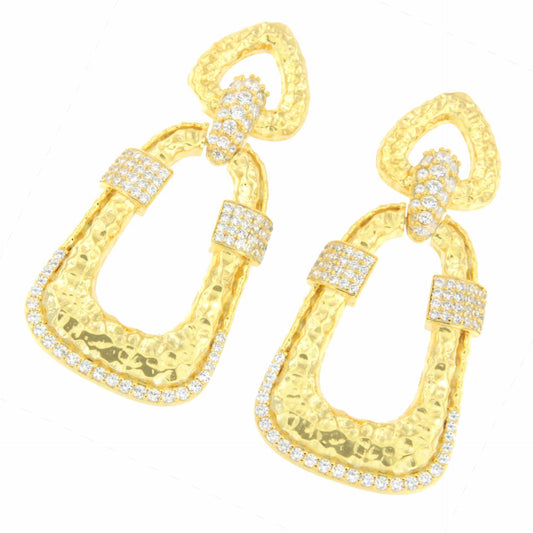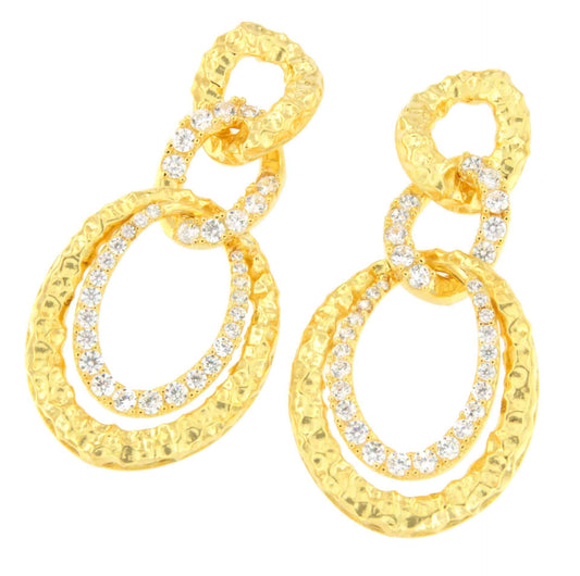 TAHIRA earrings, in sterling silver plated in 18-karat gold with a textured finish and cubic zirconia stones.