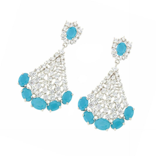 YSEE earrings in sterling silver with cubic zirconia, coral / turquoise