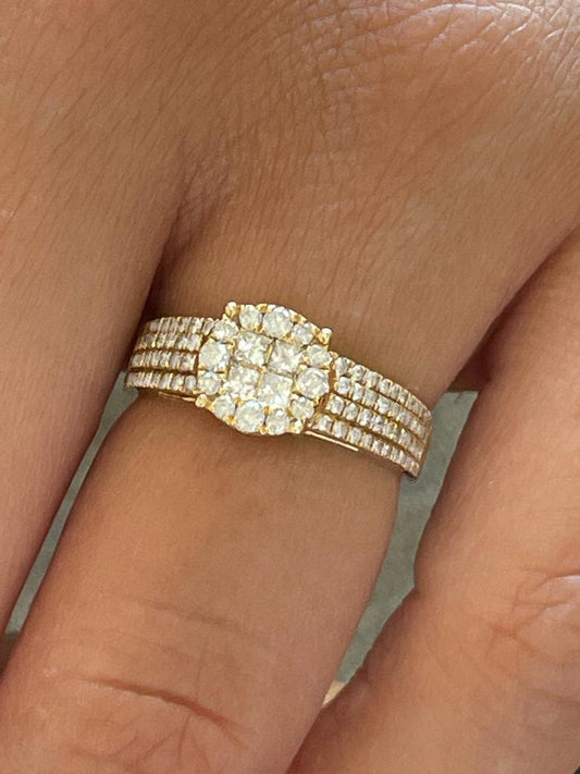 MADROÑO ring with center and border of diamonds in 18k yellow gold