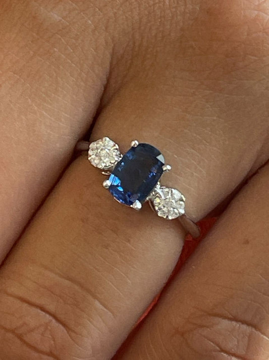MAMEY oval sapphire ring with diamonds in 18k white gold.