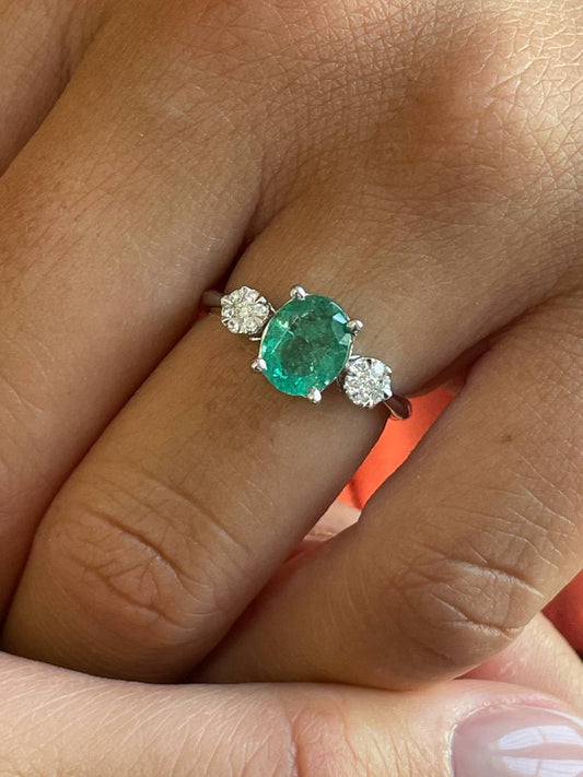 MANGO ring with oval emerald and diamonds in 18k white gold.