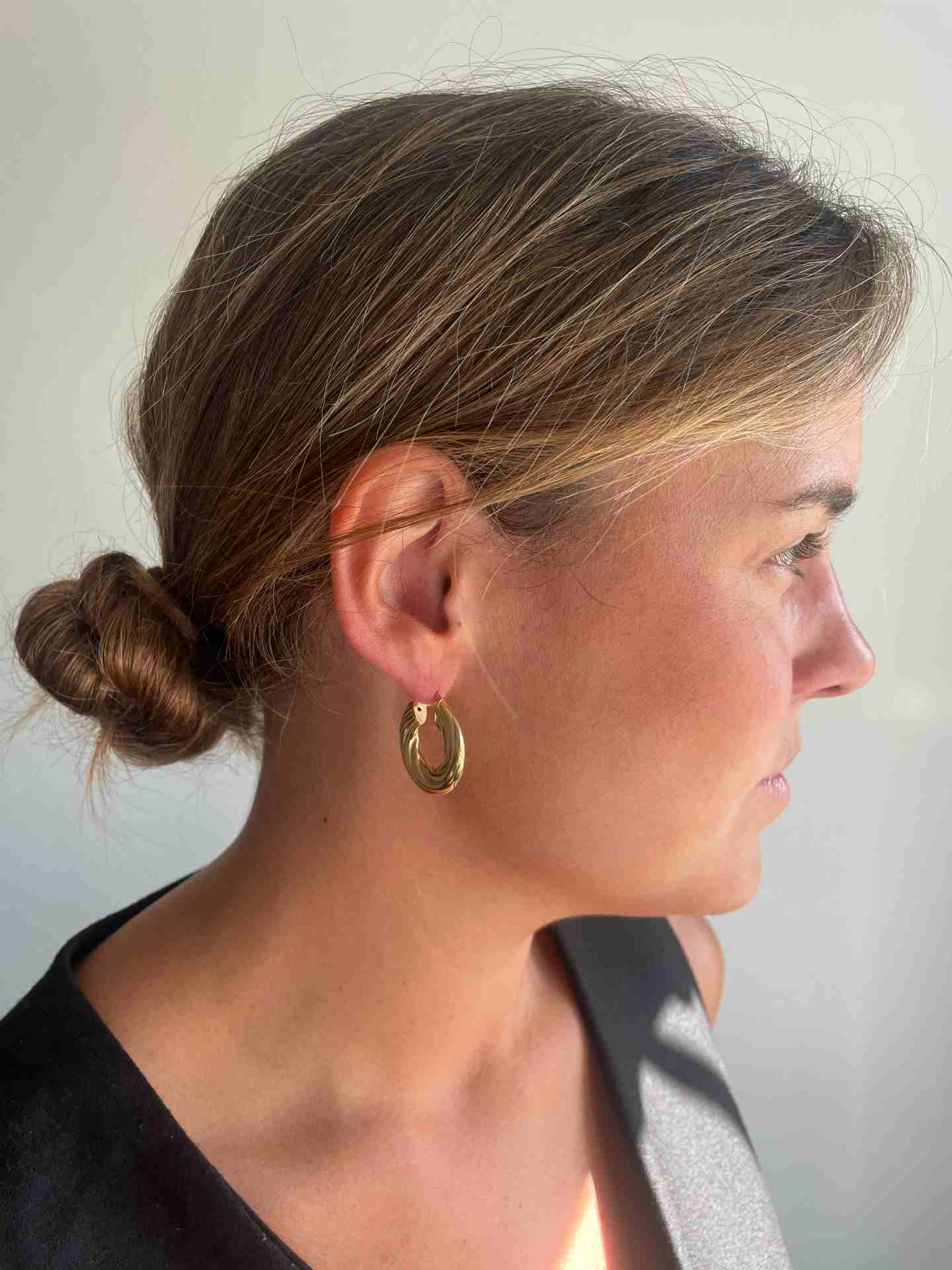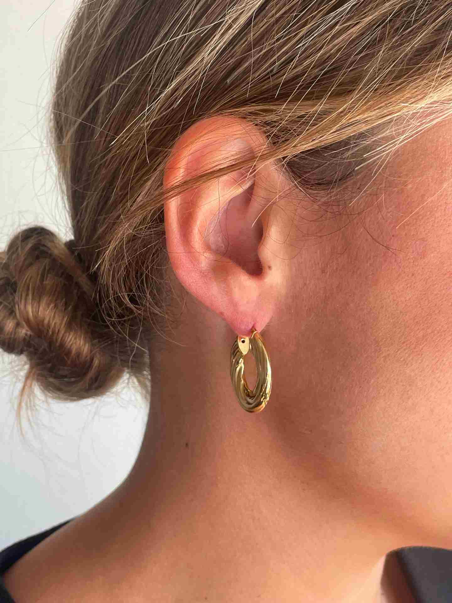 TANGER flat, fluted hoop earrings in sterling silver plated with gold