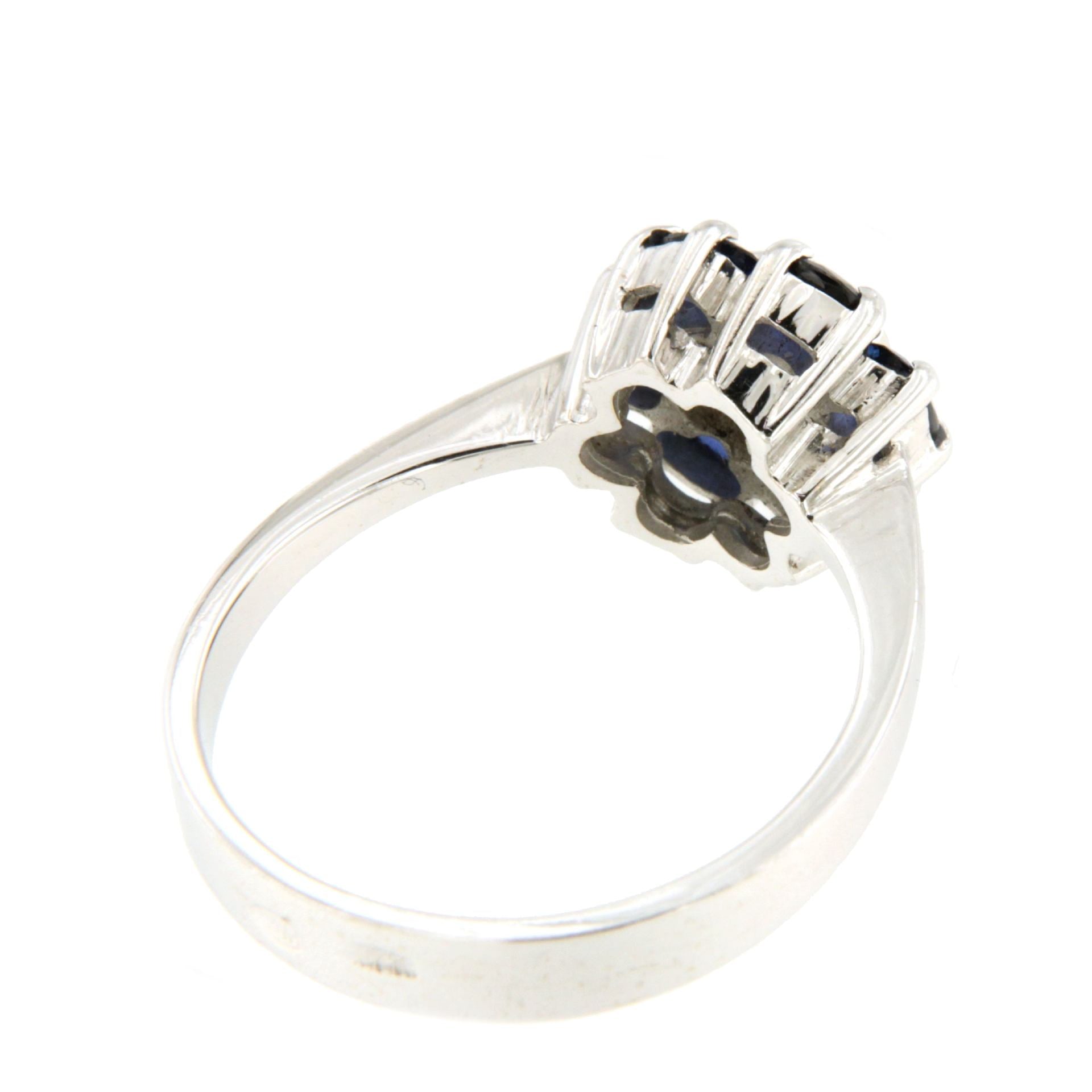 ALCOBENDAS , a solitaire diamond ring in 18-karat white gold surrounded by oval sapphires set in four prongs. Very versatile!