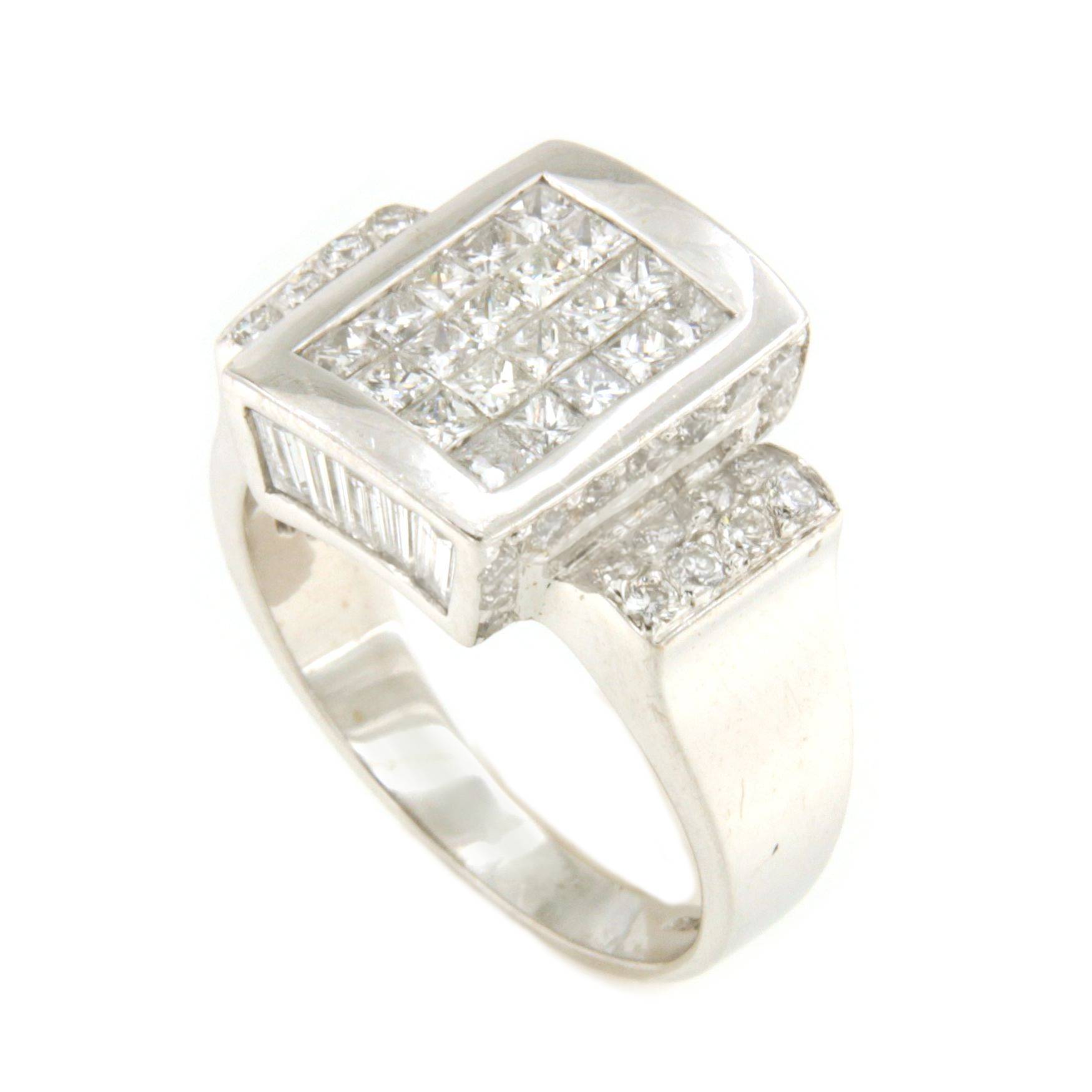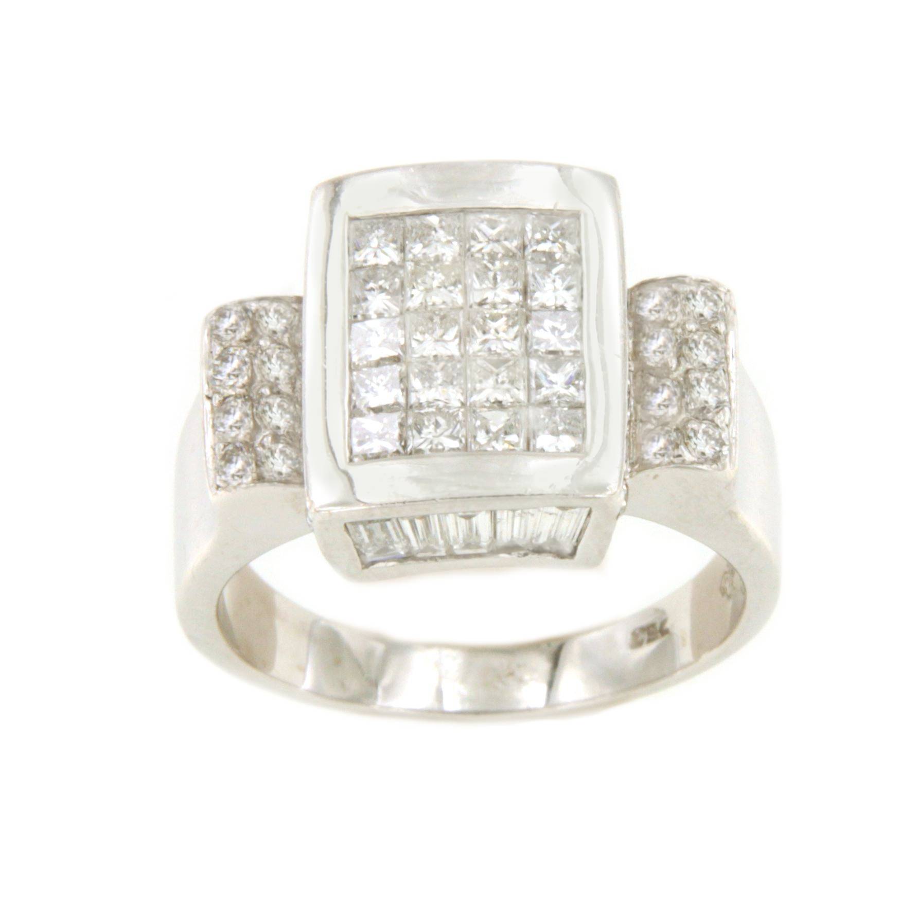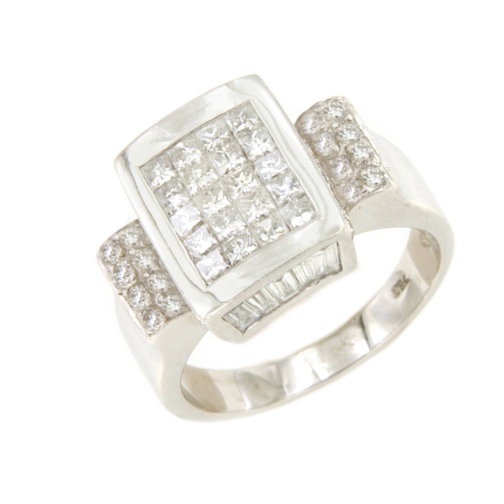 ARAHAL ring in 18k white gold with diamonds, baguettes and princesses.
