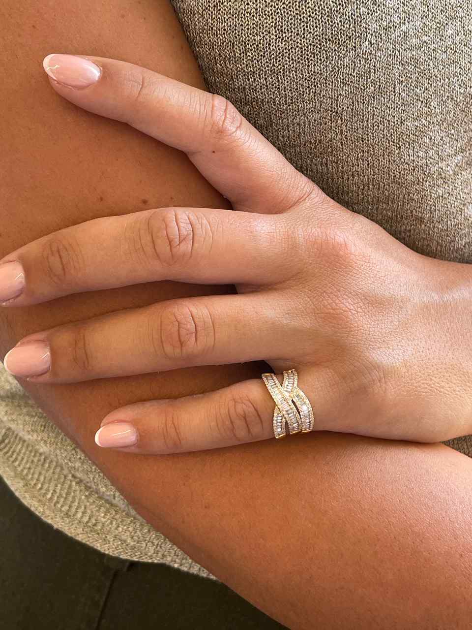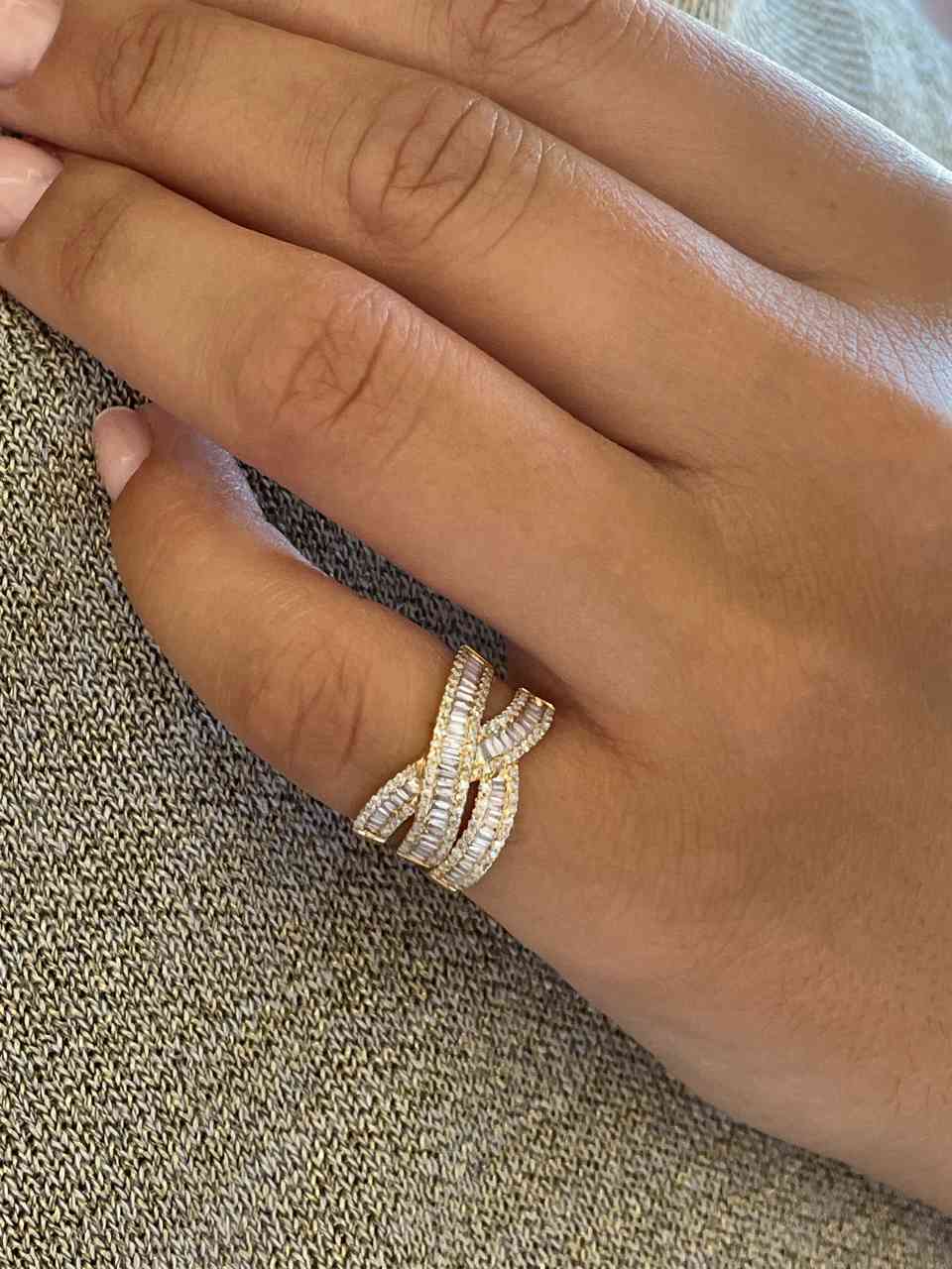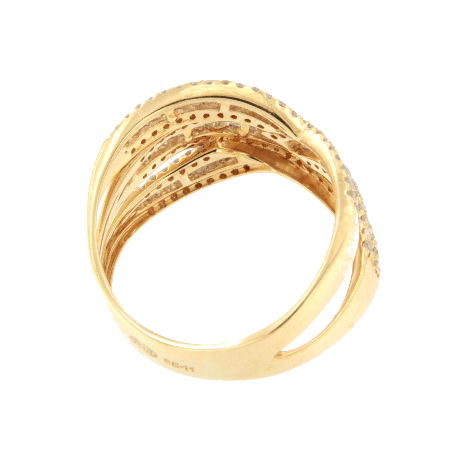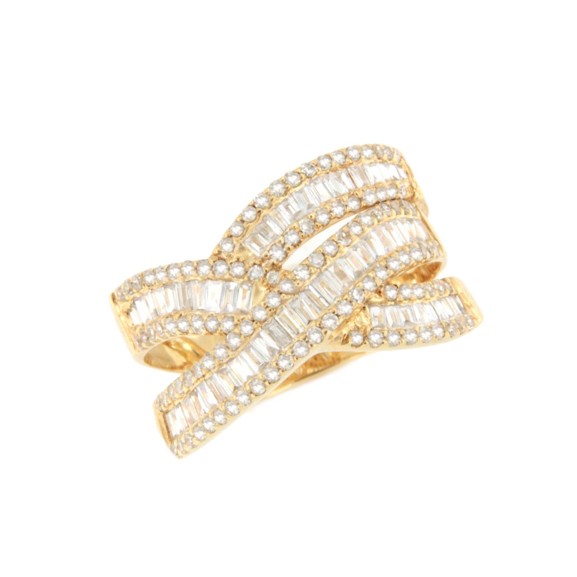 AZUFAIFO ring with crossed bands and diamonds in yellow gold