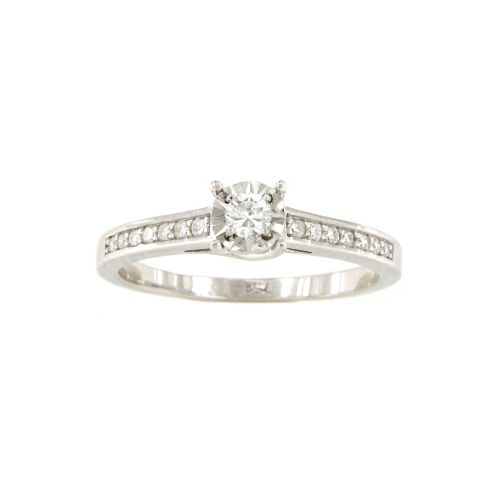 Precious gem: 1 brilliant cut diamond 0.09 carats center and 14 brilliants of 0.155 carats.