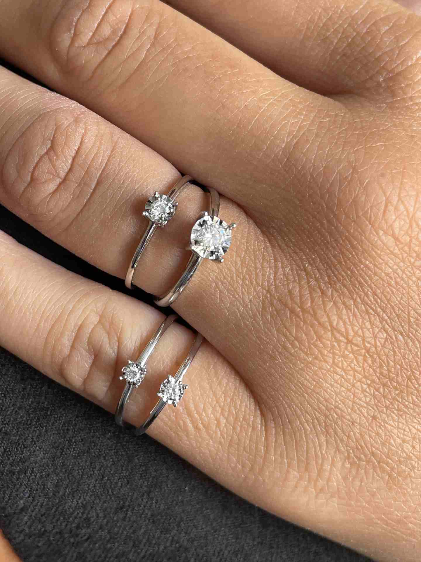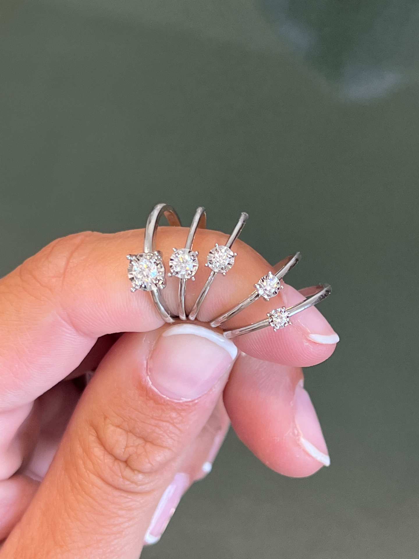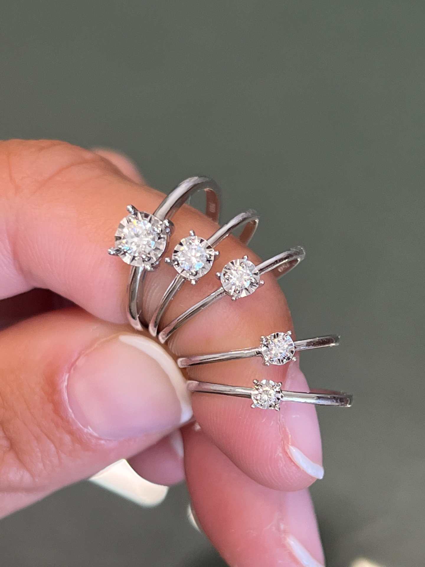 BREST is a new design of brilliant-cut diamond solitaires in various sizes, set in 18-karat white gold on a faceted bezel that beautifully showcases the diamond. A truly unique engagement ring.