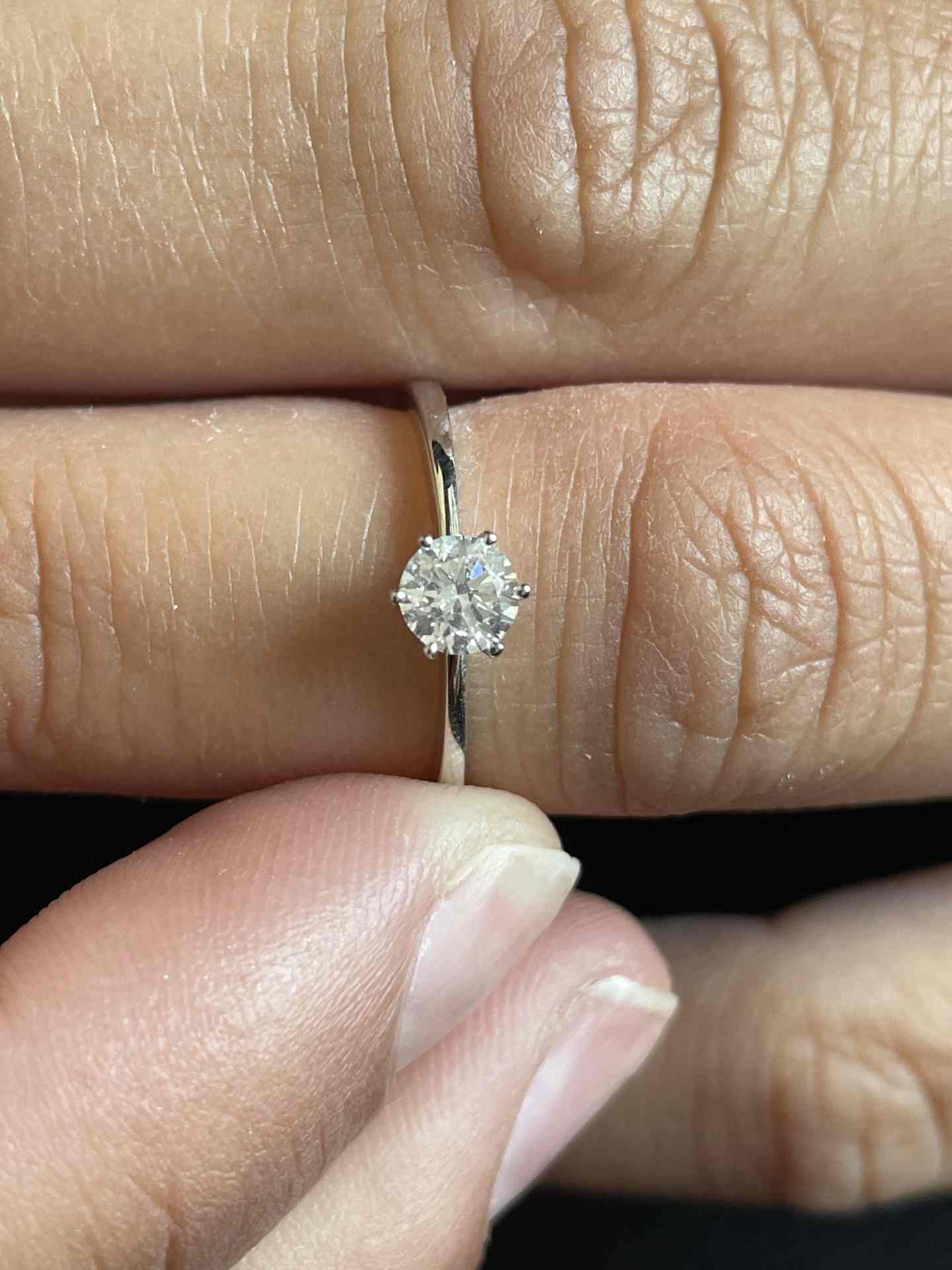 CALAIS is a classic six-prong deep V- set diamond solitaire ring crafted in 18-karat white gold . Perfect for special occasions such as engagements or anniversaries. Available in two sizes. Yellow gold option also available.