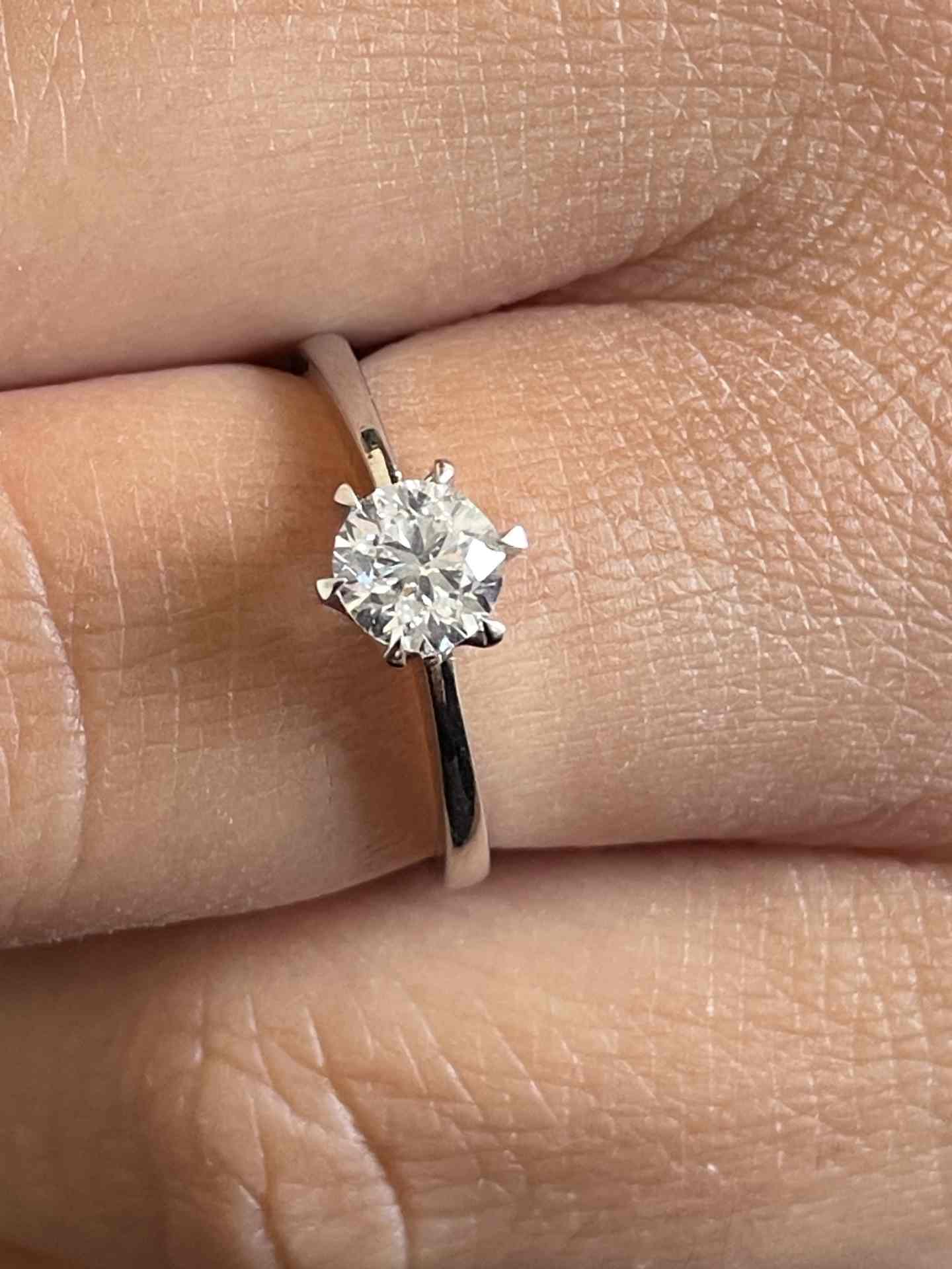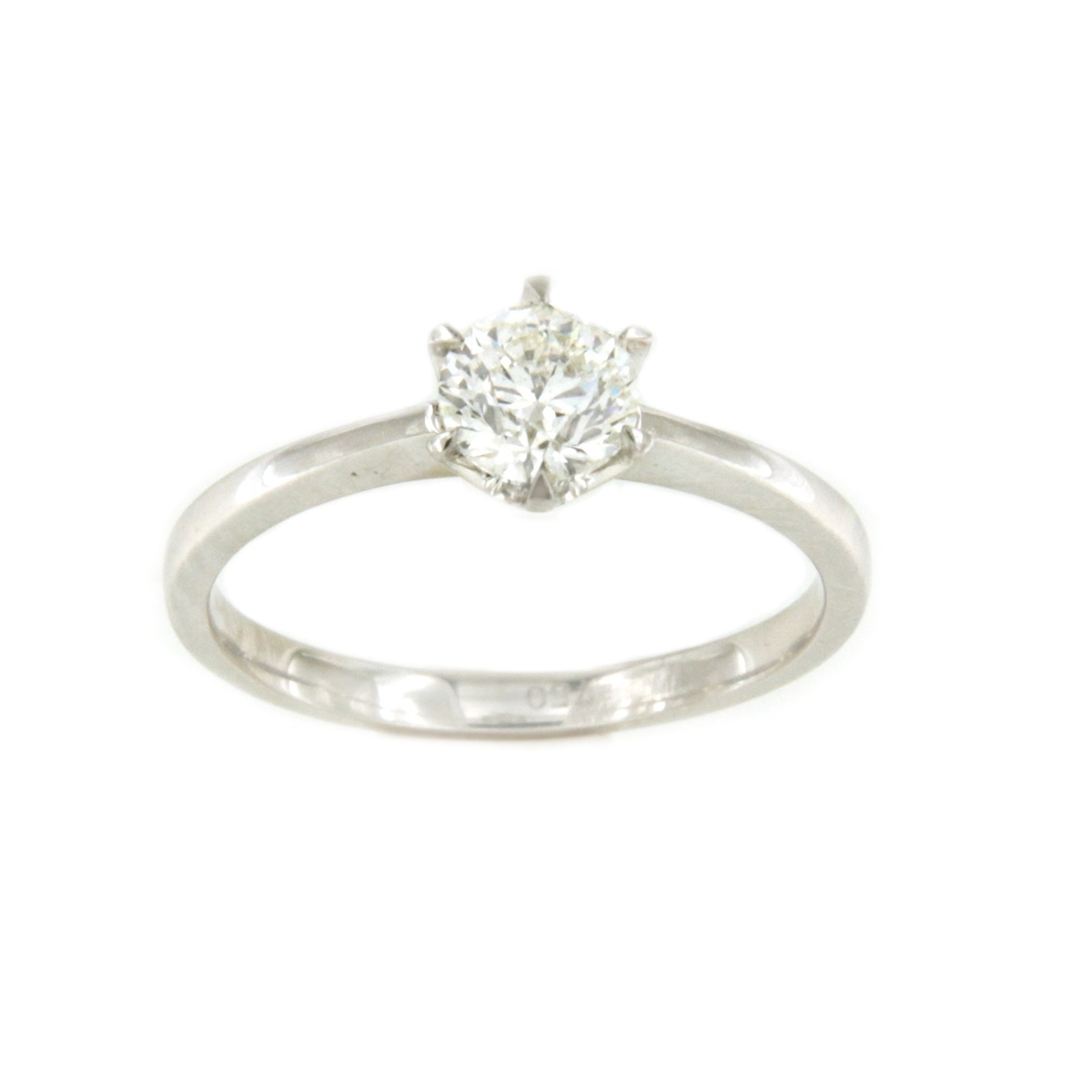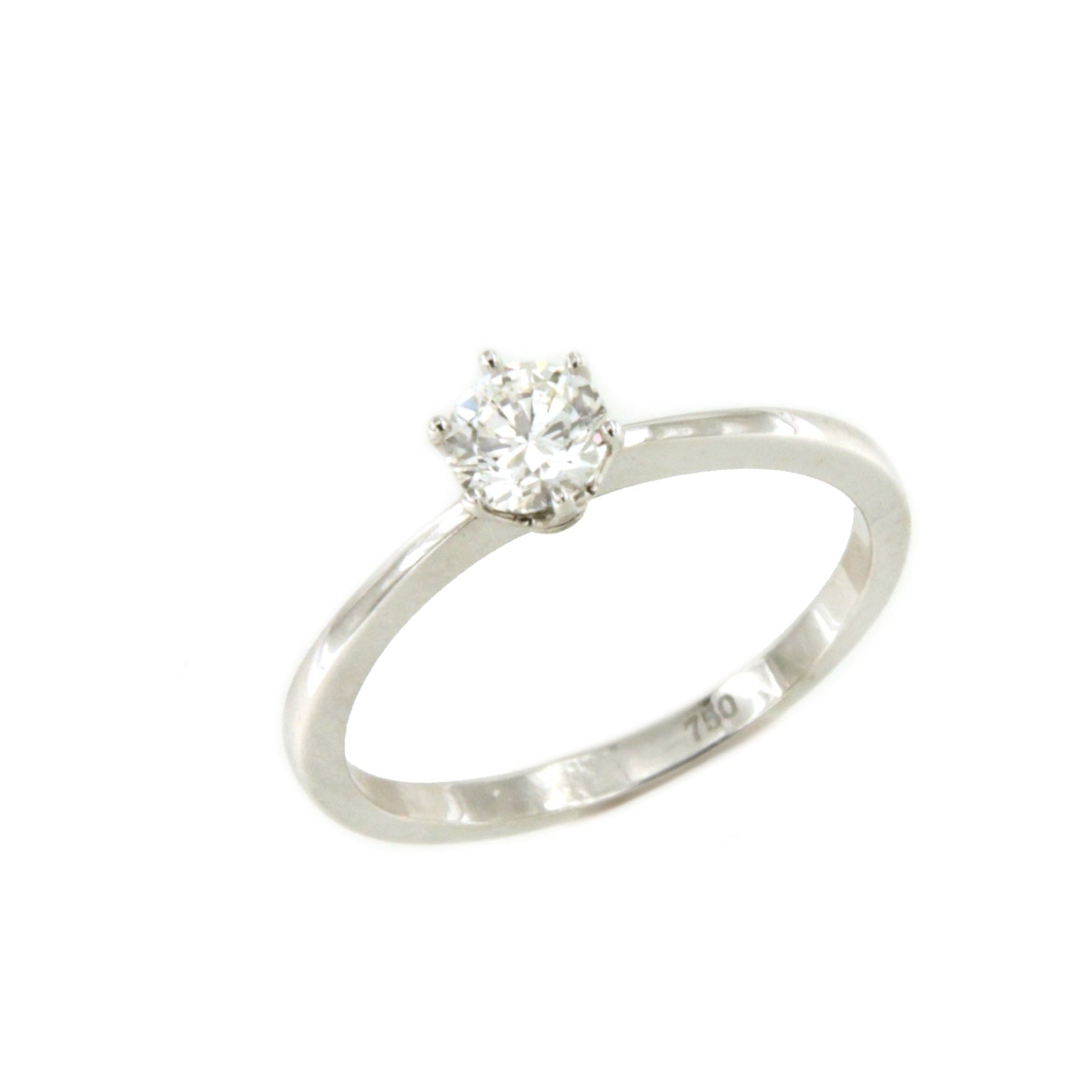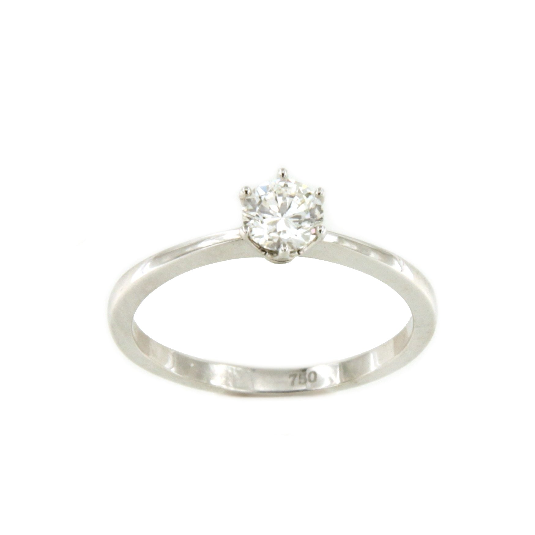 CALAIS solitaire ring with six-prong diamond in 18k white gold