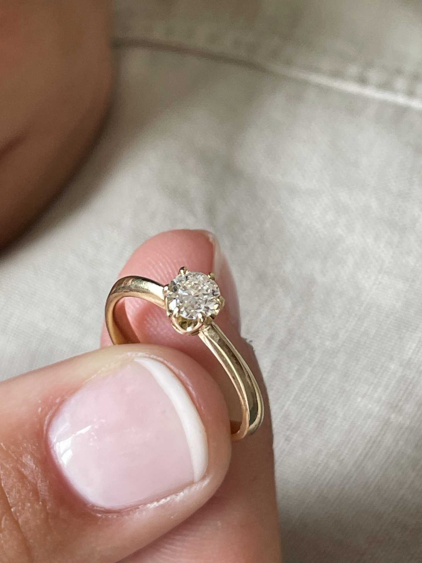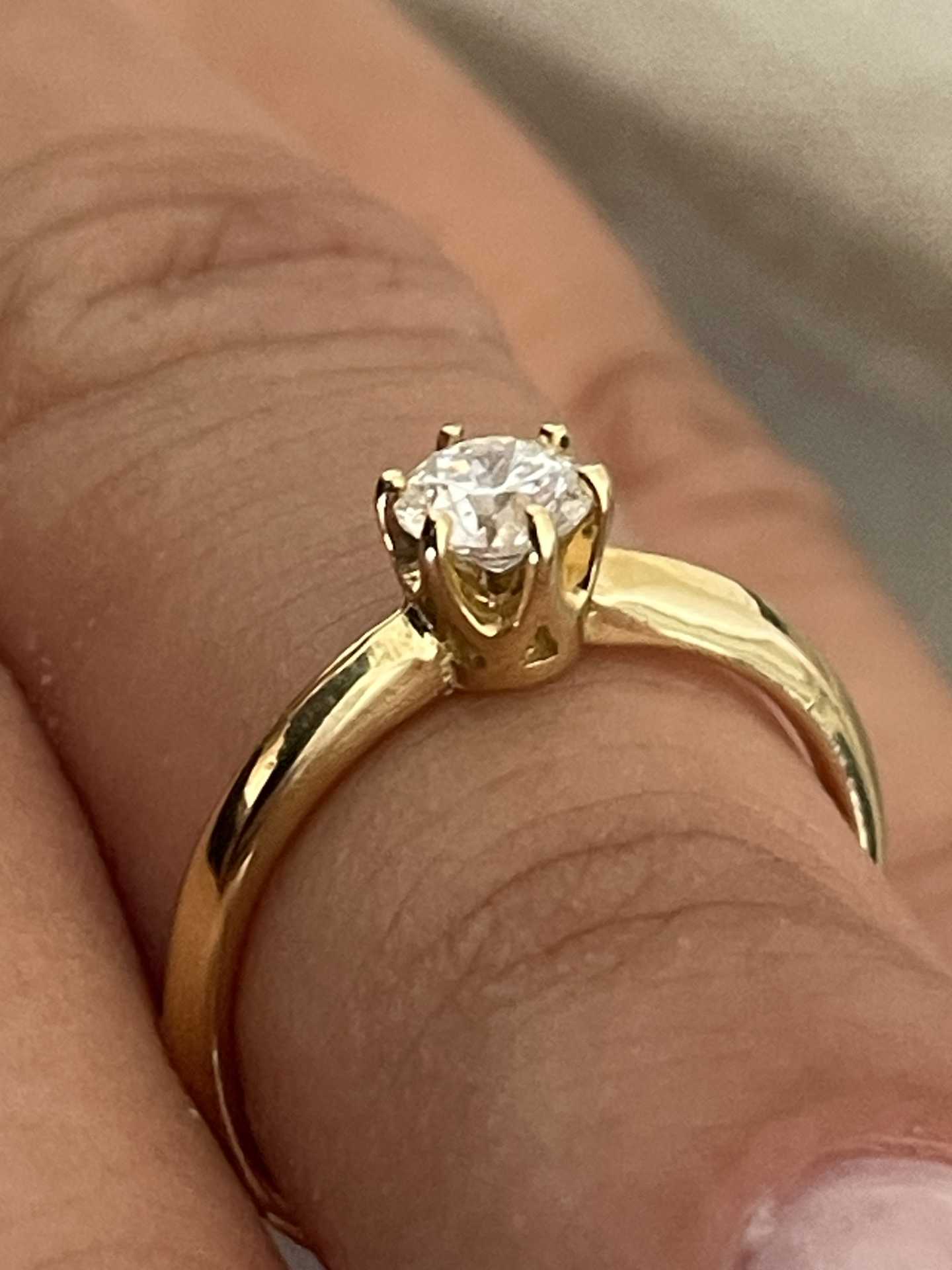 Precious gemstone:Small A. 1 brilliant-cut diamond of 0.38 carats and Large B. 1 brilliant-cut diamond of 0.54 carats. Yellow gold 0.40 carats.