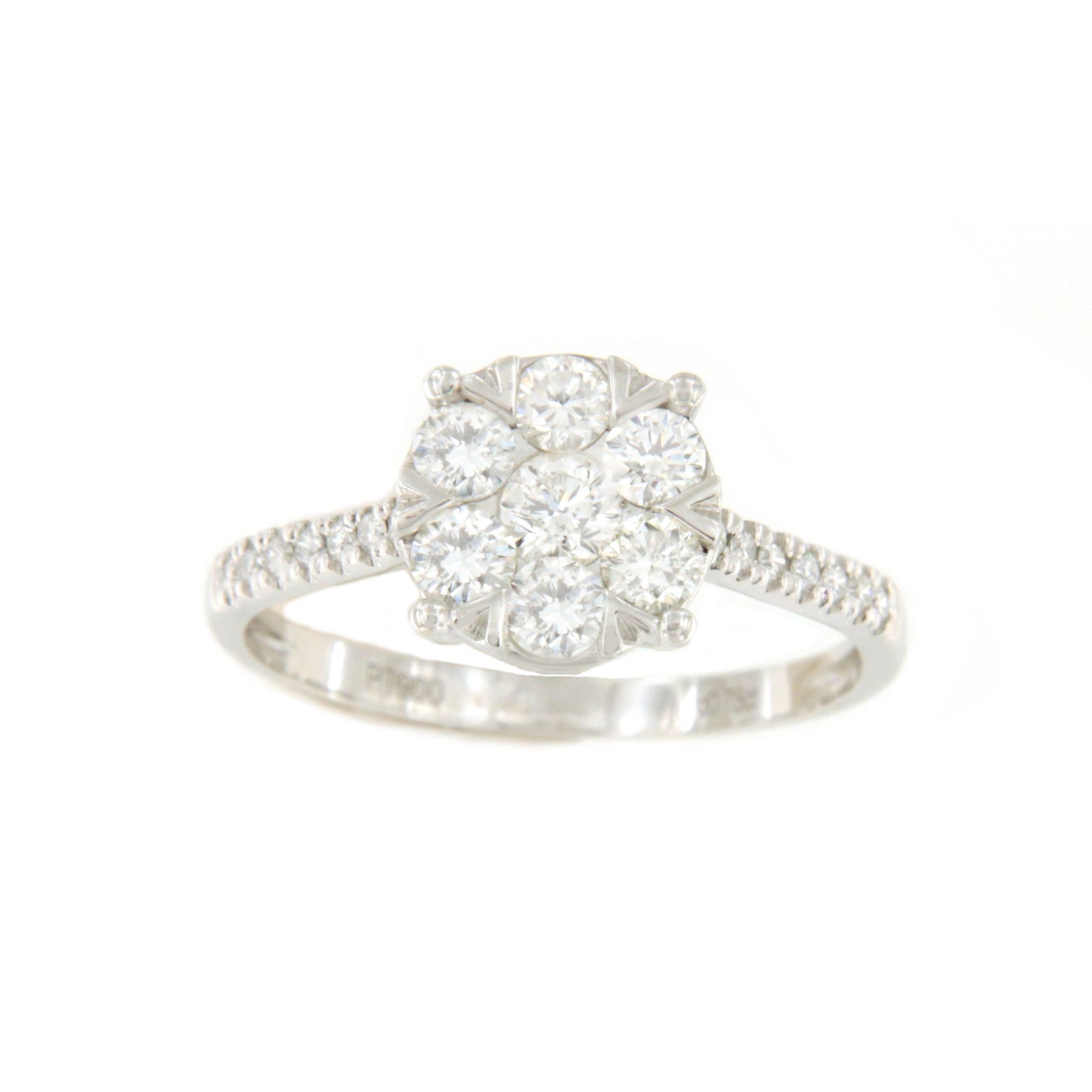 CAMU ring with a rosette center and brilliant-cut diamond in 18k white gold