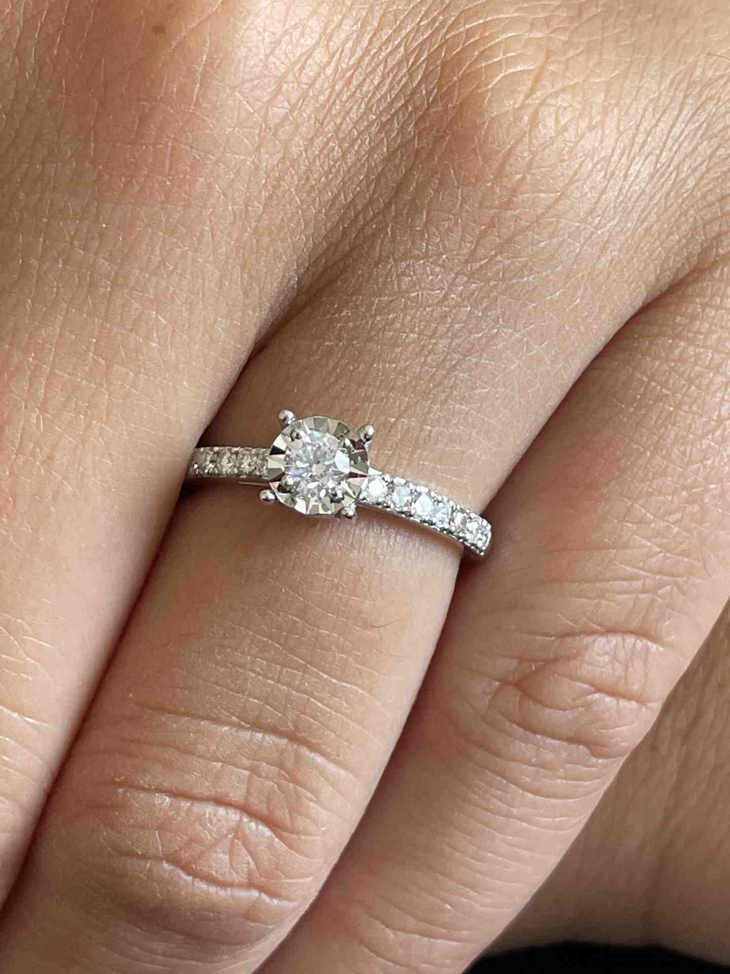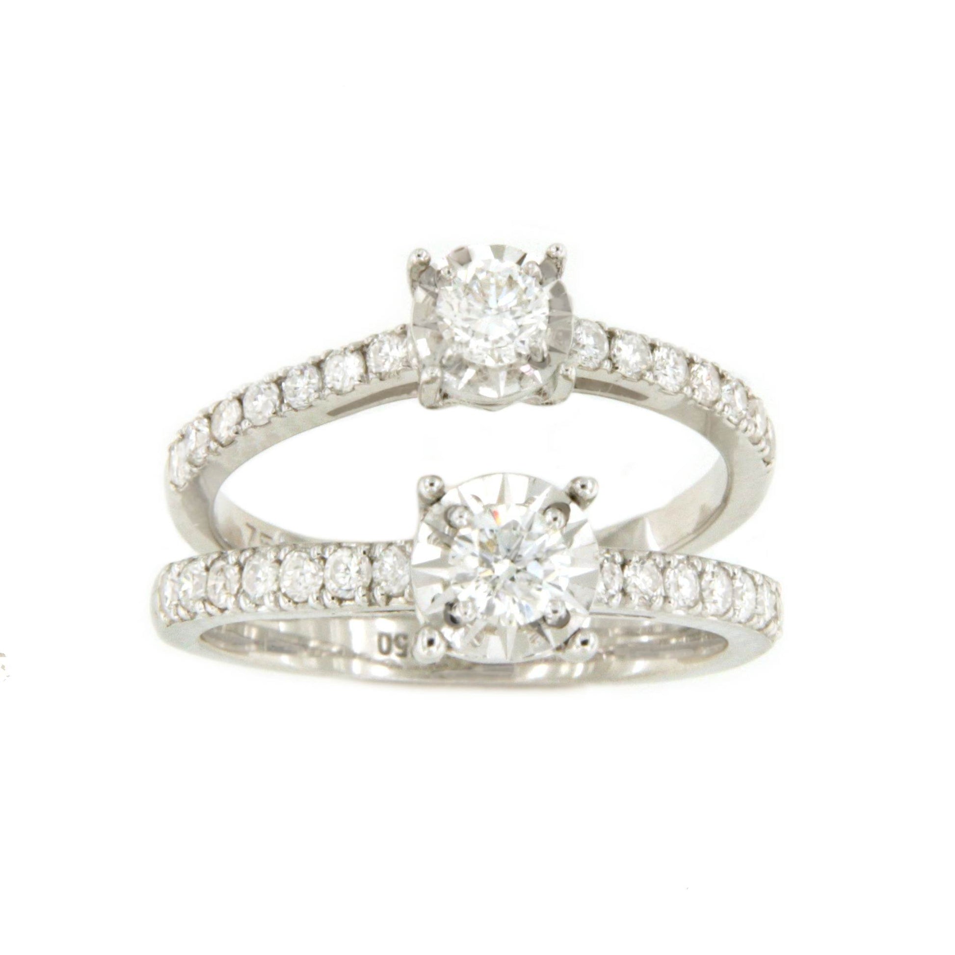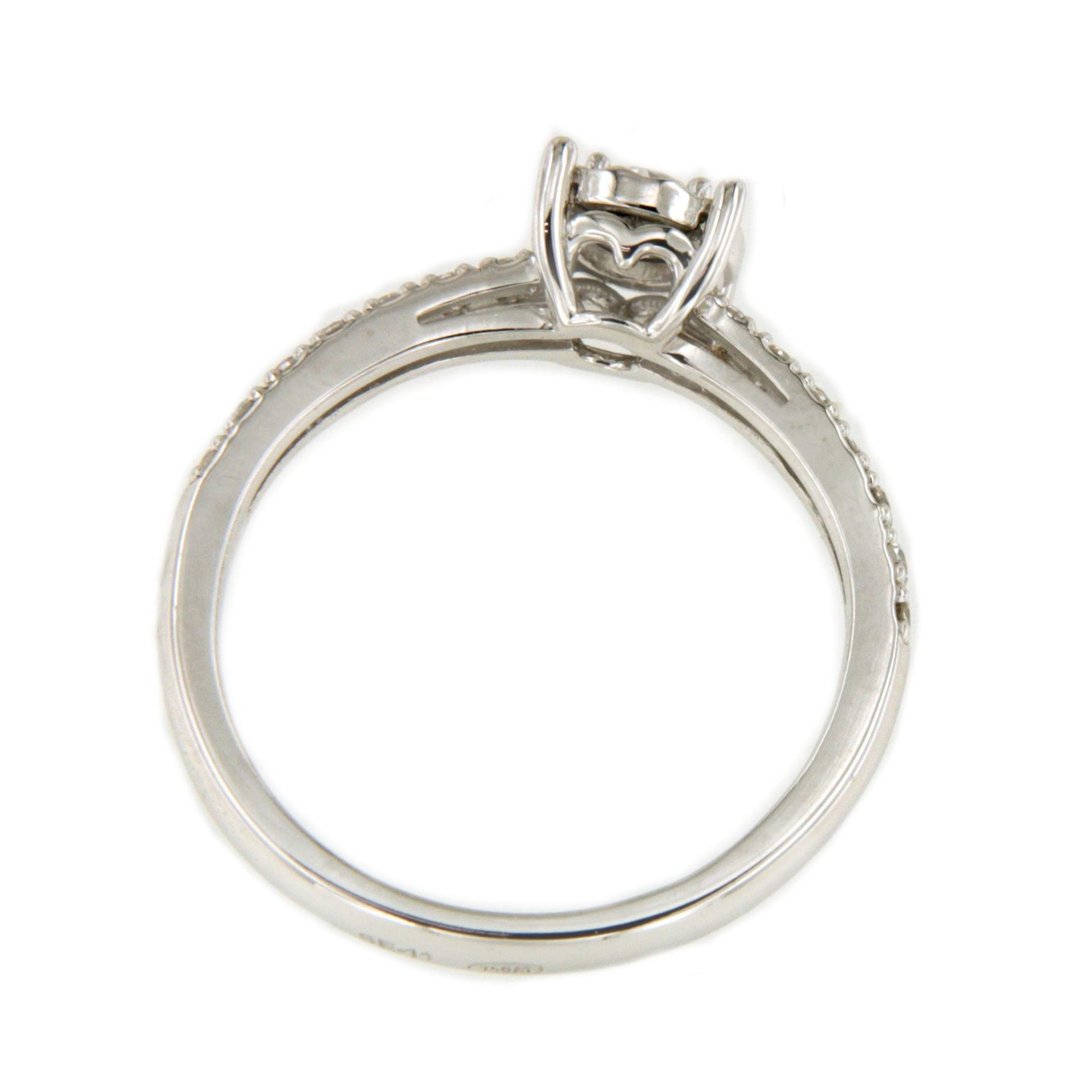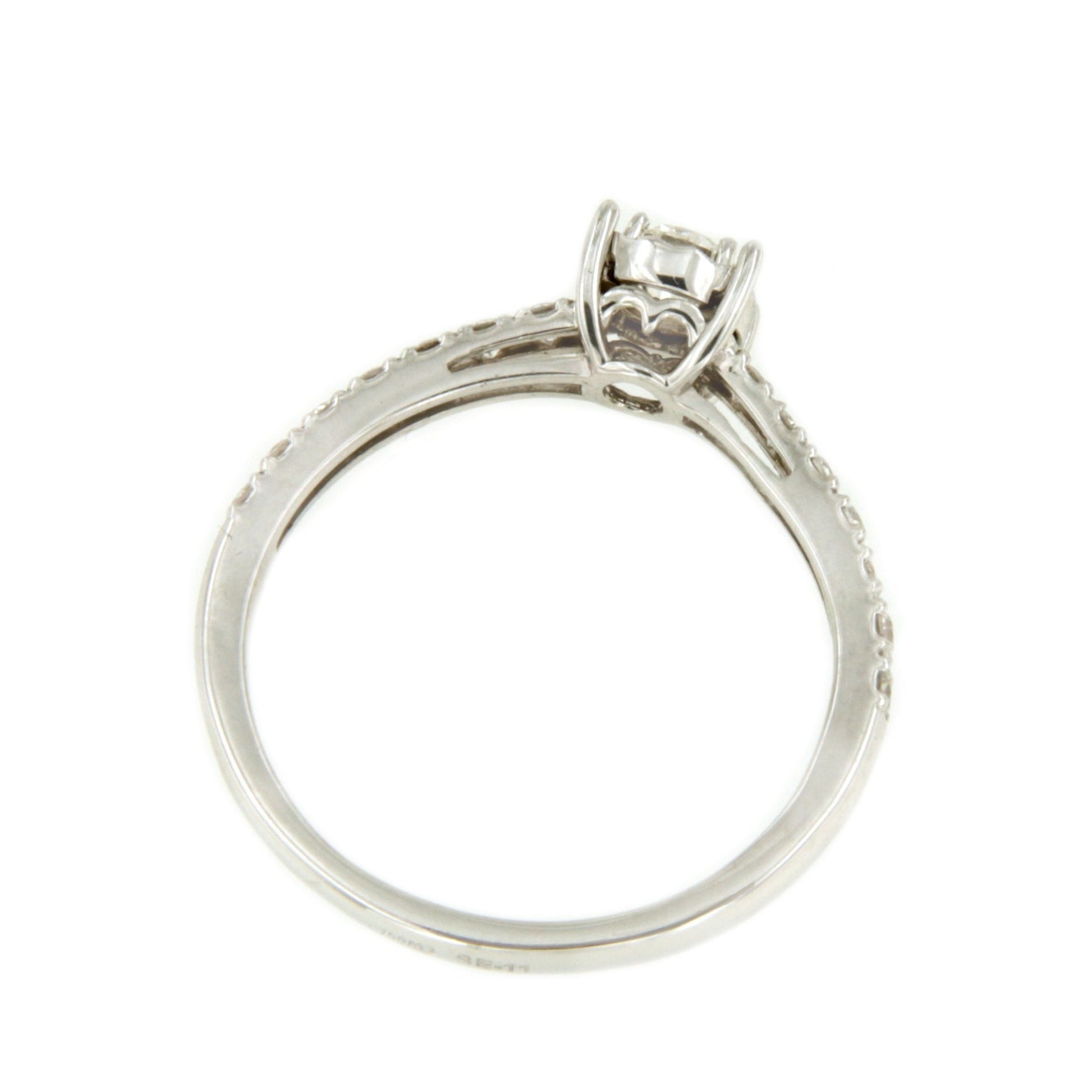 CHAMBERY , a beautiful solitaire diamond ring with a diamond-set band, crafted in 18k white gold with a diamond-cut edge that enhances its beauty. Perfect for proposals and engagements.