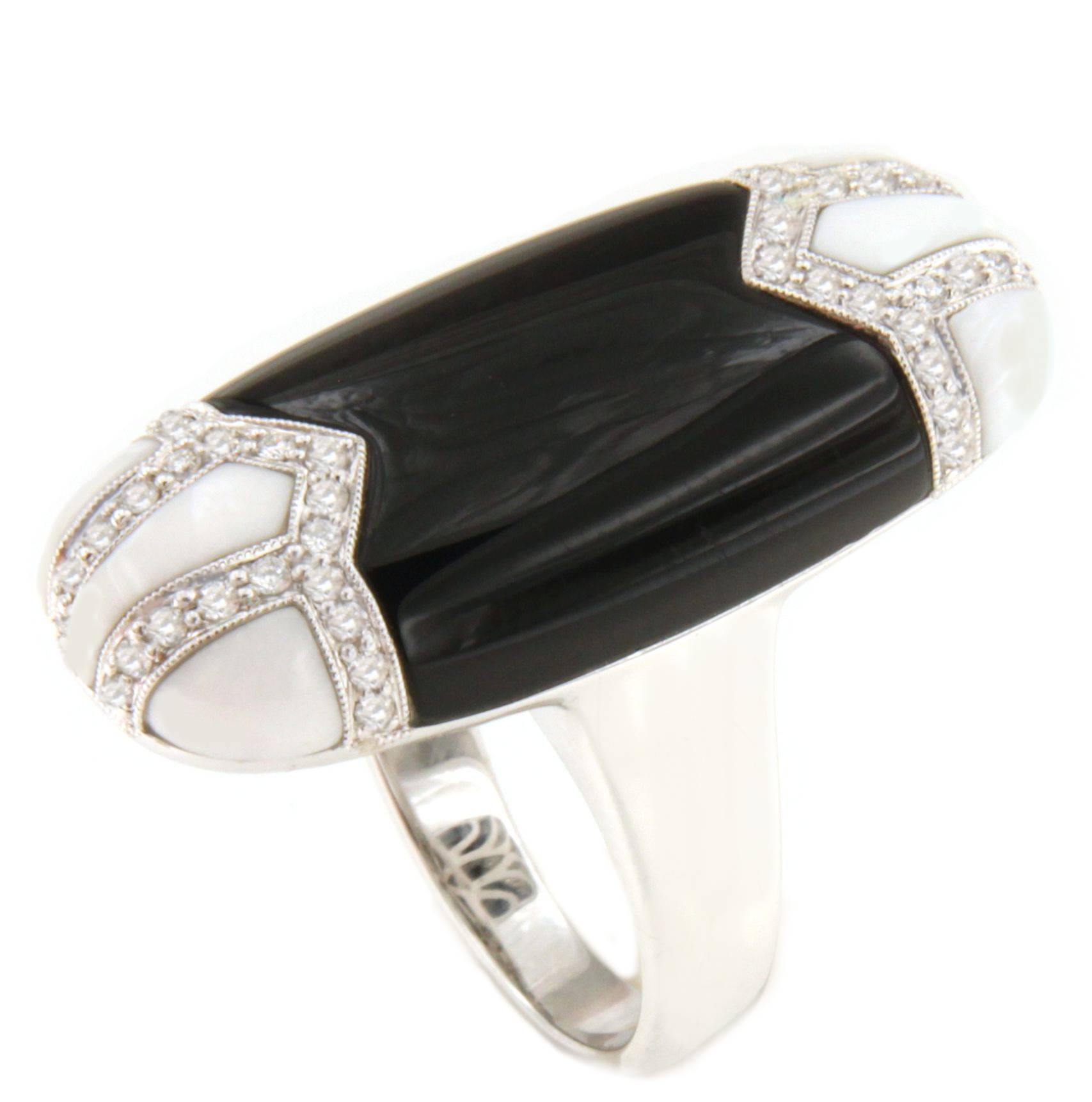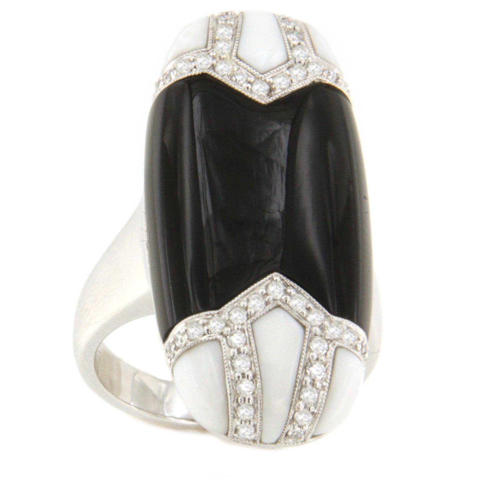 CORNELLA ring with onyx, white agate and diamonds in 18 karat white gold.