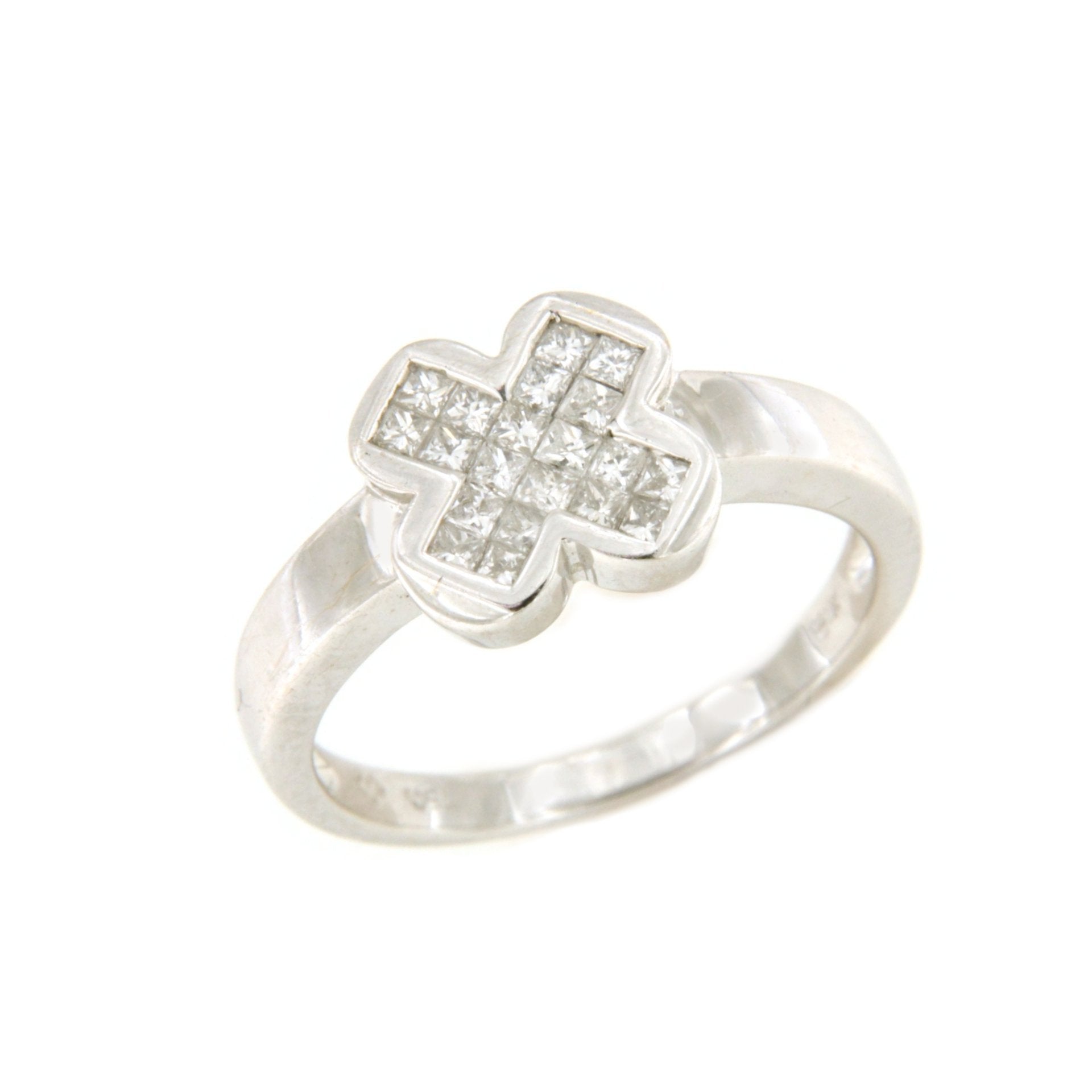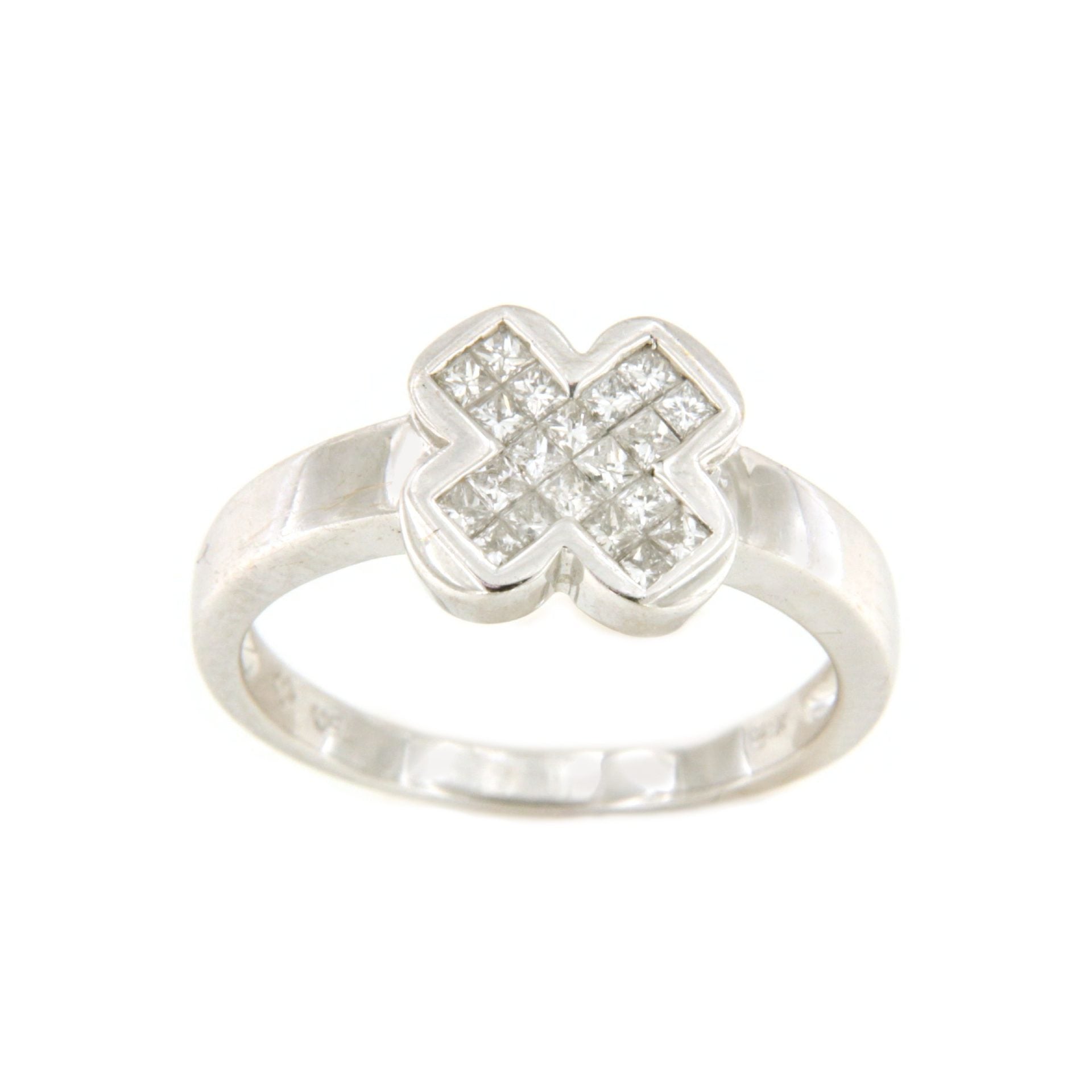 ESPARTINAS is an original 18-karat white gold ring mounted with princess-cut diamonds, with an invisible cross-set design.
