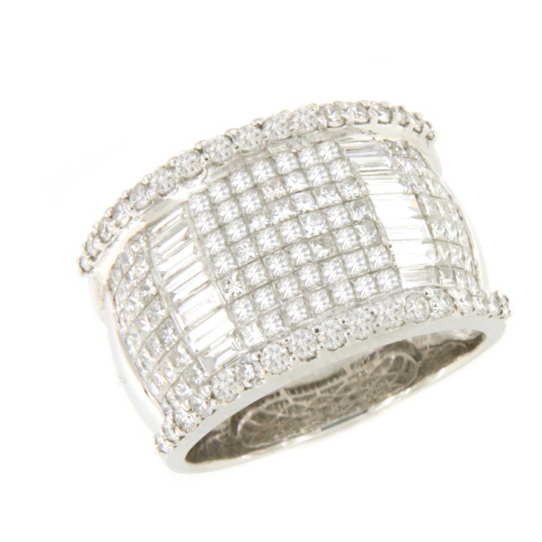GUILLENA ring in 18k white gold with diamonds, baguettes and princesses.