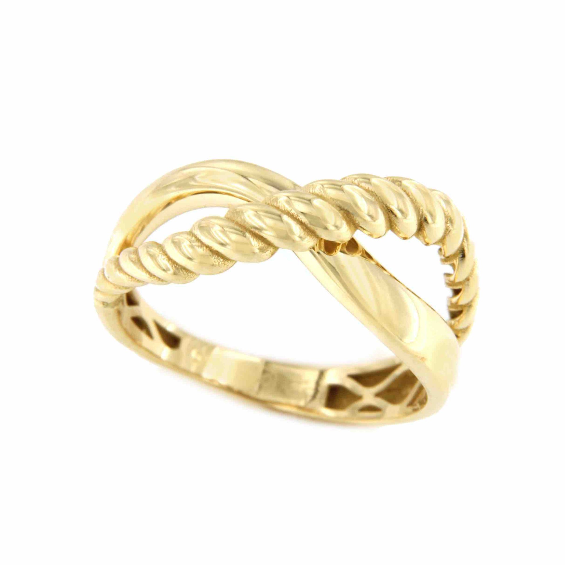 JABATO , 18-karat yellow gold ring with a crossed design, featuring a gadrooned band that passes over it.
