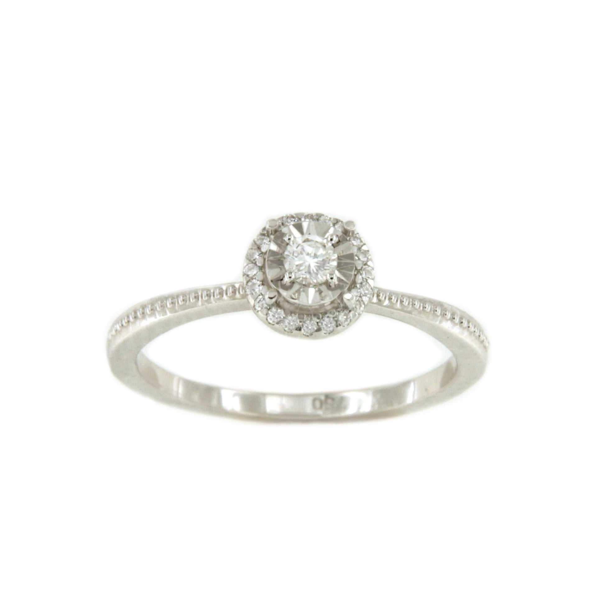 LE HAVRE solitaire diamond ring with rosette in 18k white gold