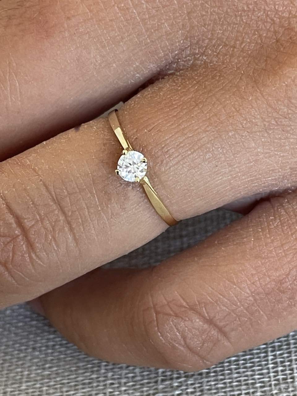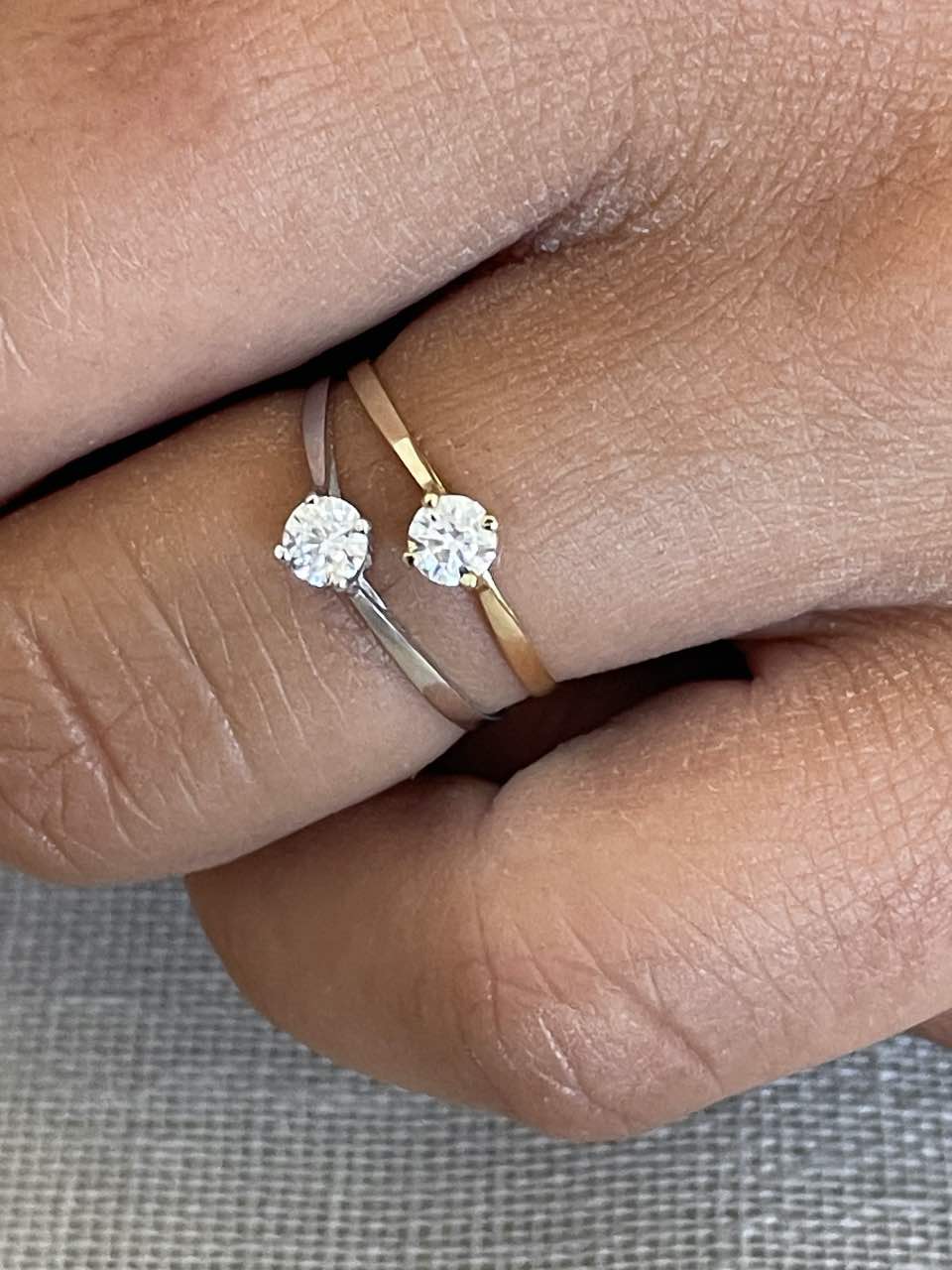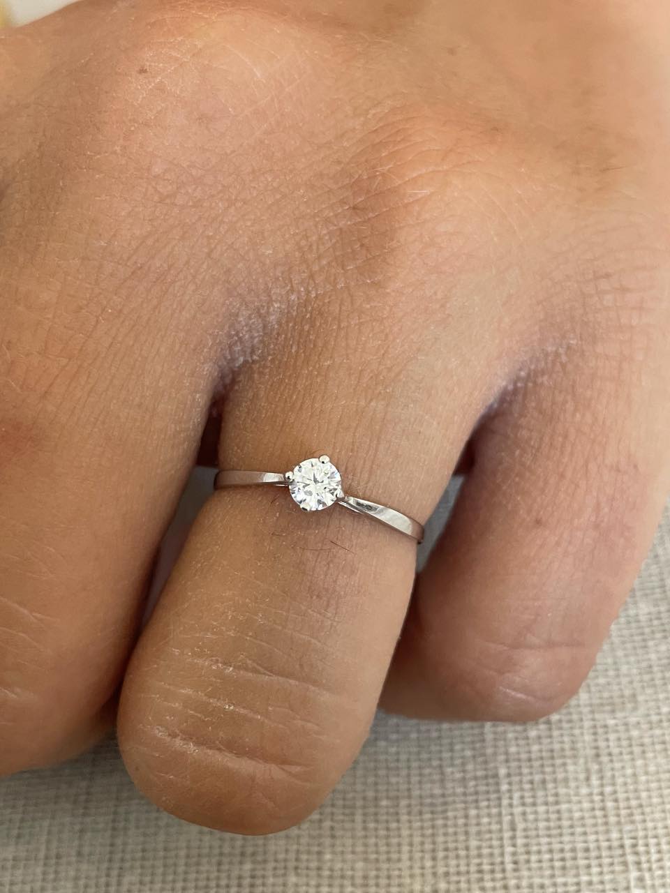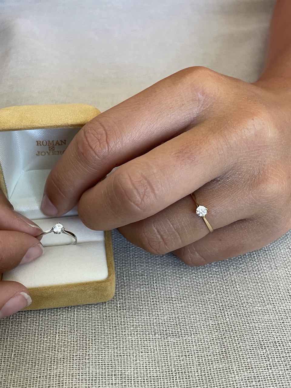 LEIRA , a solitaire ring model featuring a cubic zirconia set in four prongs, mounted in 18-karat white or yellow gold . A beautiful engagement ring.