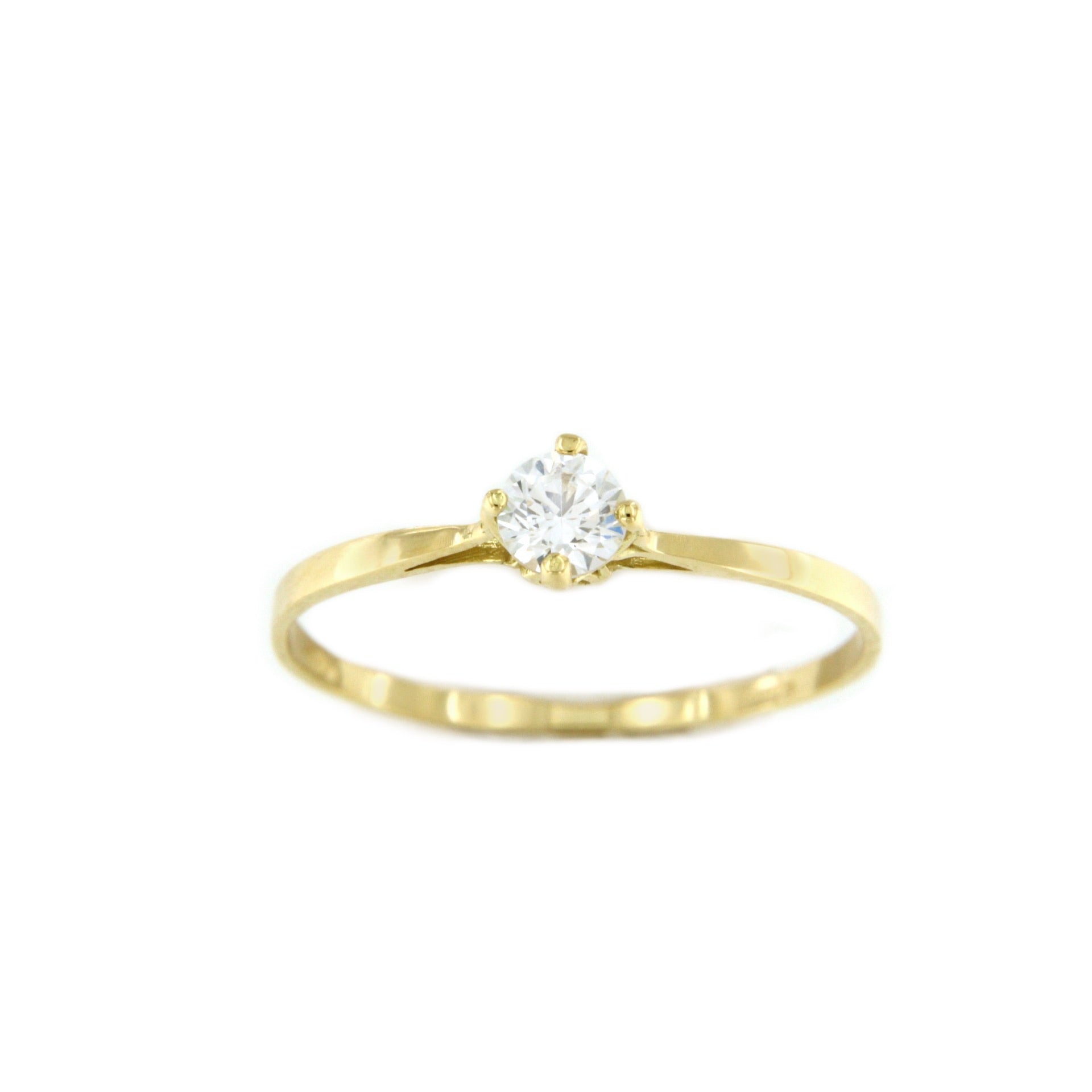 LEIRA solitaire ring in yellow or white gold with cubic zirconia in 18k