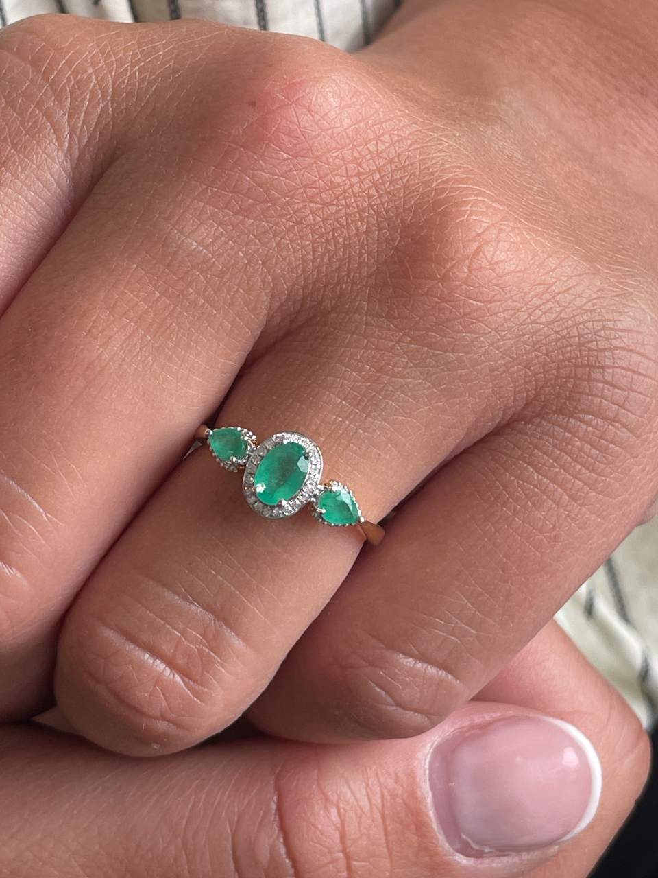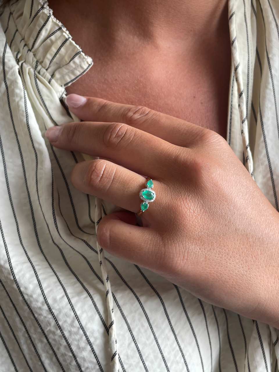 LUMARA ring with diamonds in 14k yellow gold and emeralds