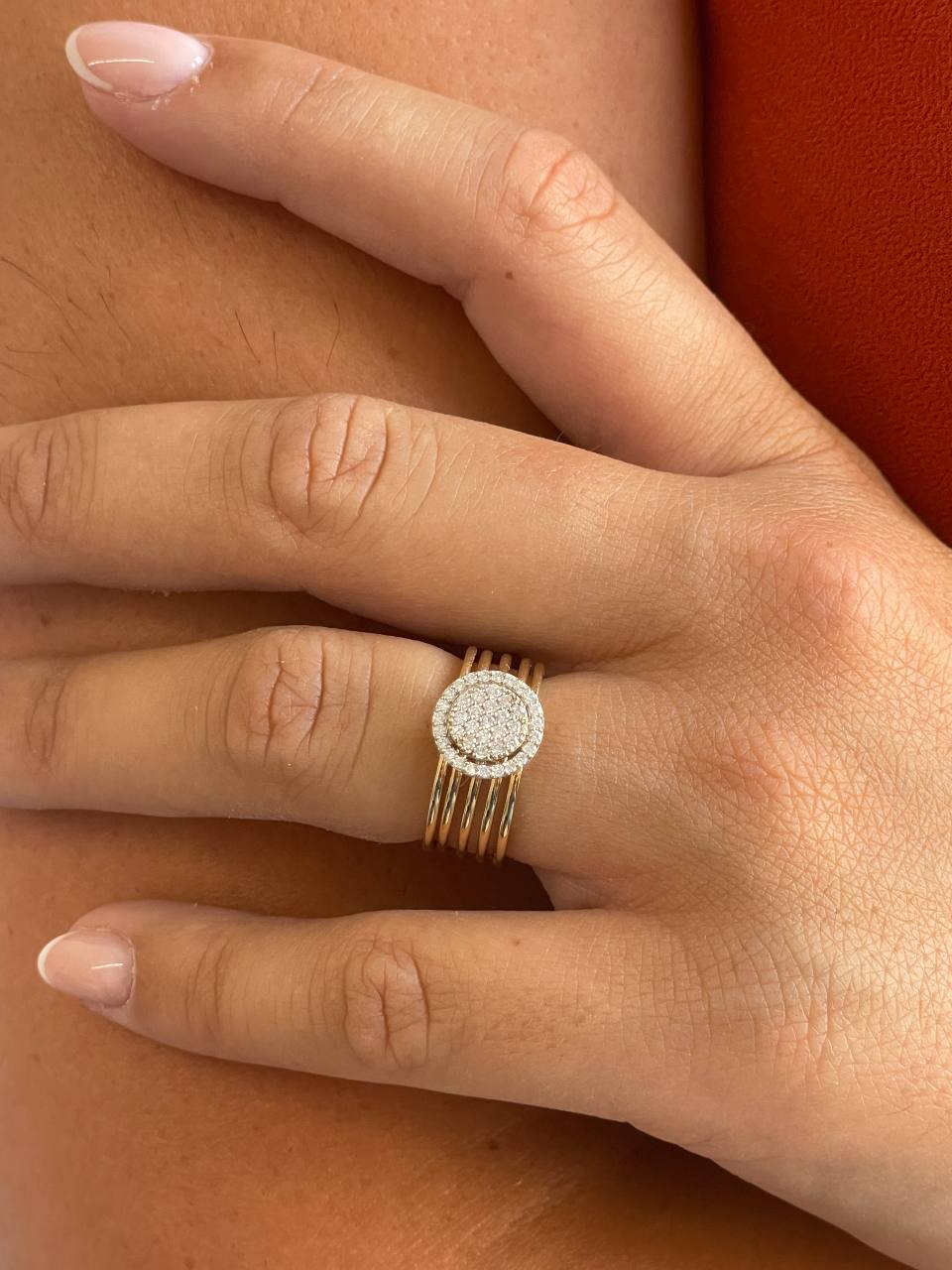 MADROÑO ring with center and border of diamonds in 18k yellow gold