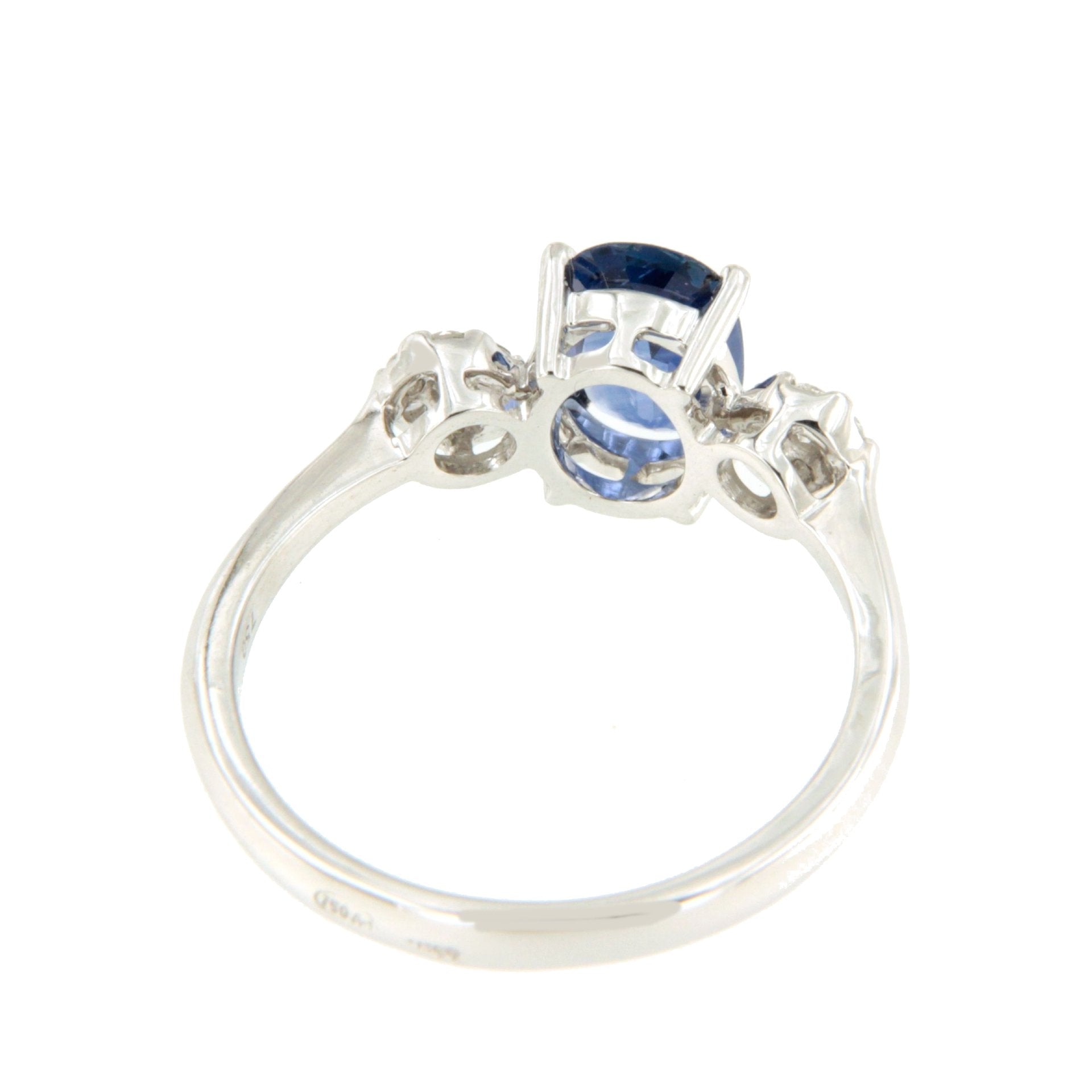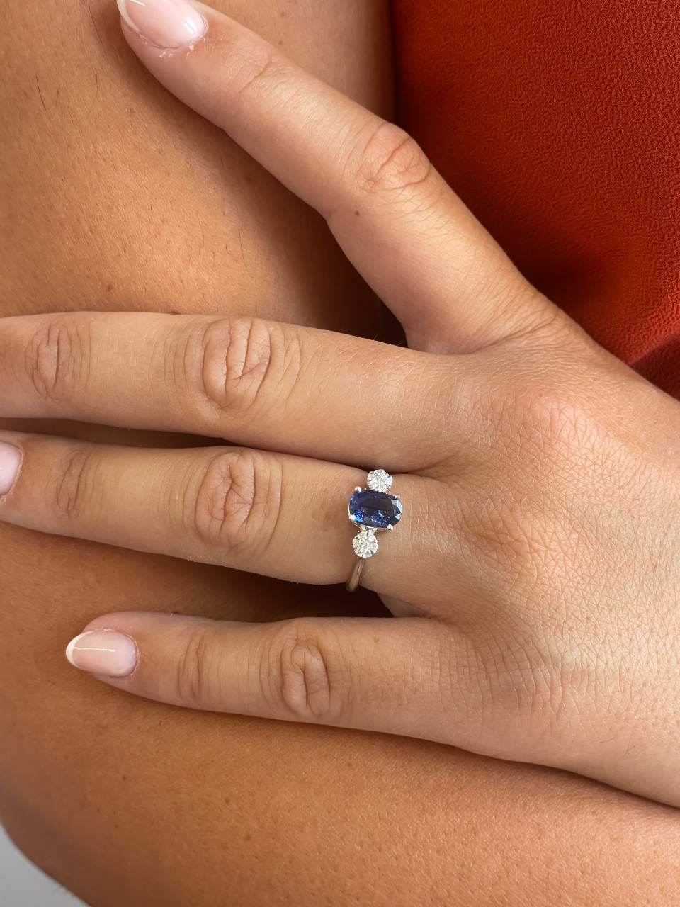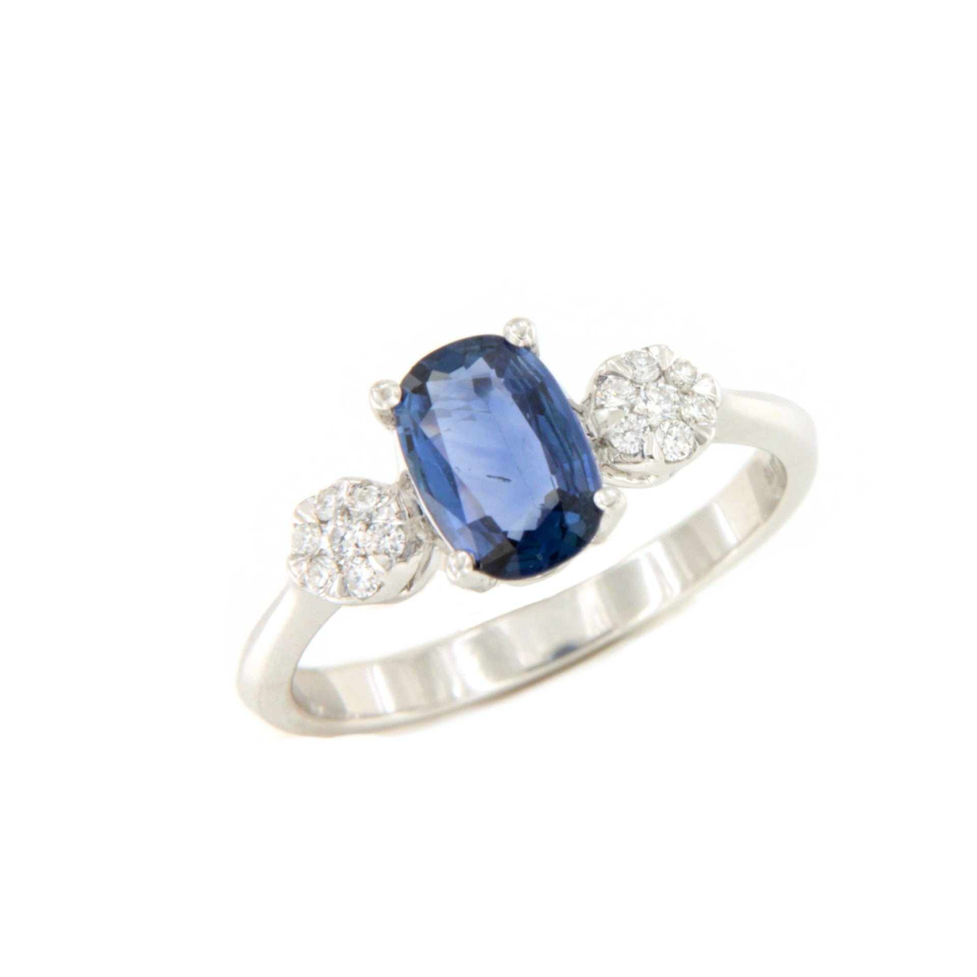 Precious gem: 1 oval diffusion sapphire 0.92 carats and 14 brilliant cut diamonds 0.14 carats.