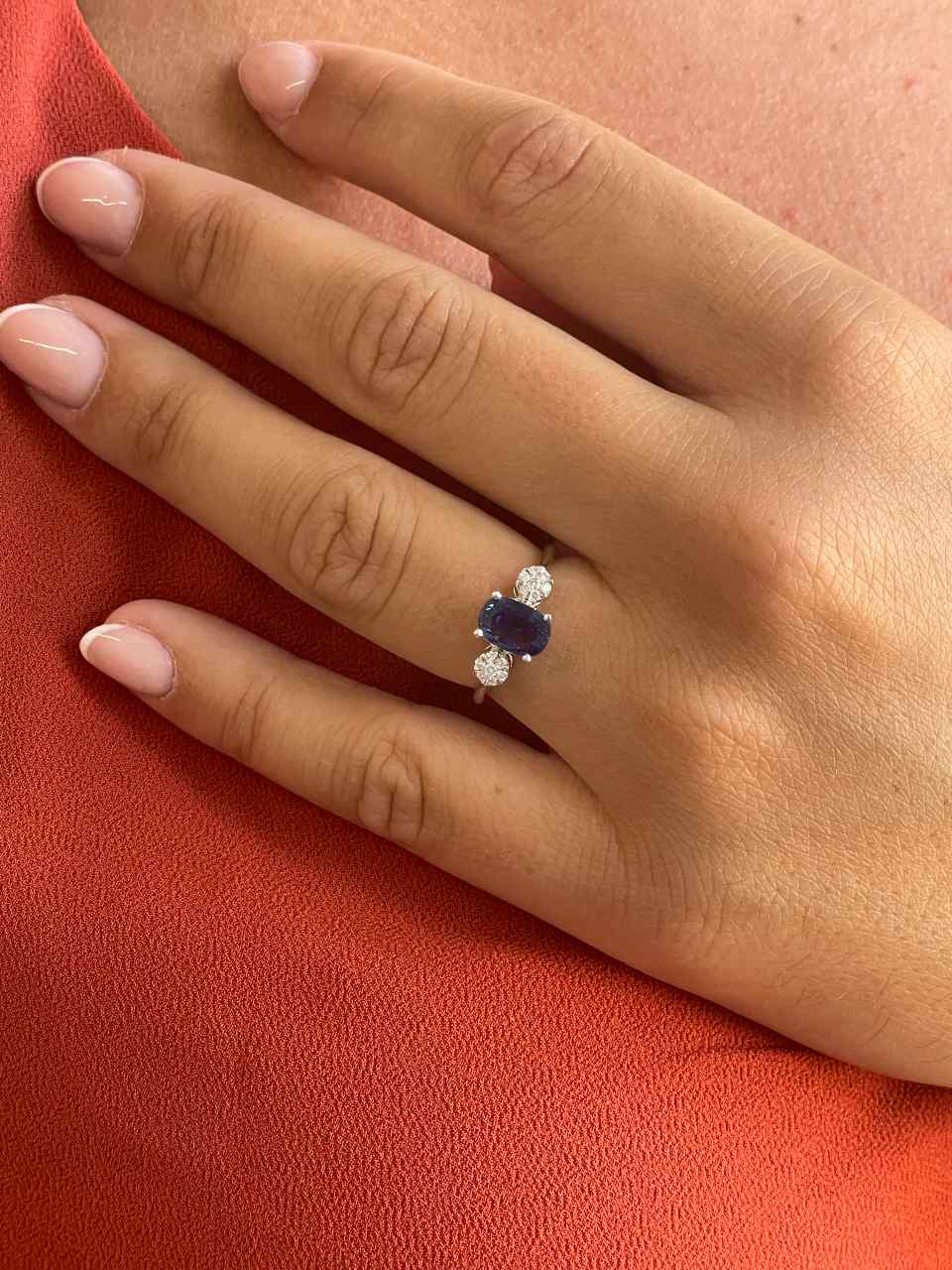MAMEY oval sapphire ring with diamonds in 18k white gold.