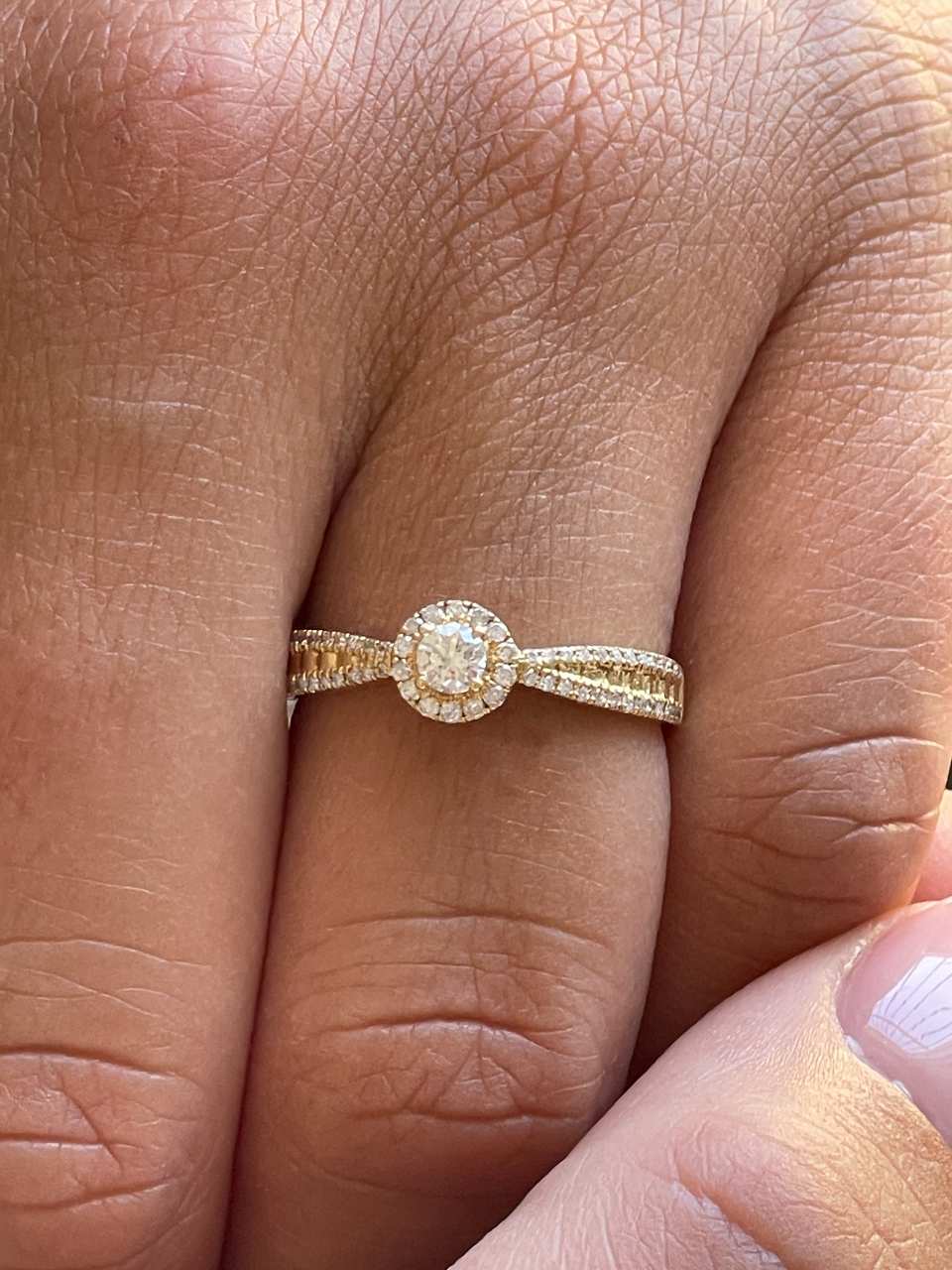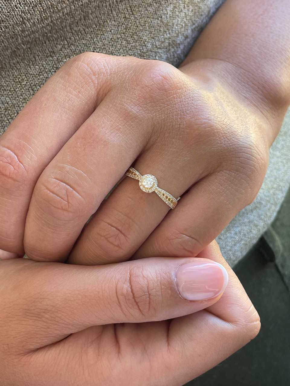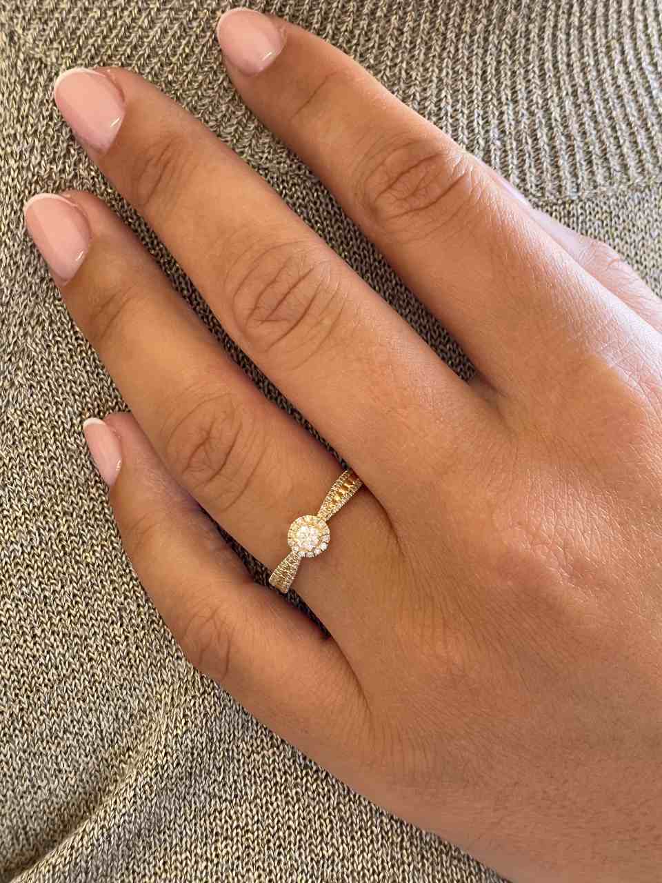 NANCE solitaire ring with diamonds in 18-karat yellow gold