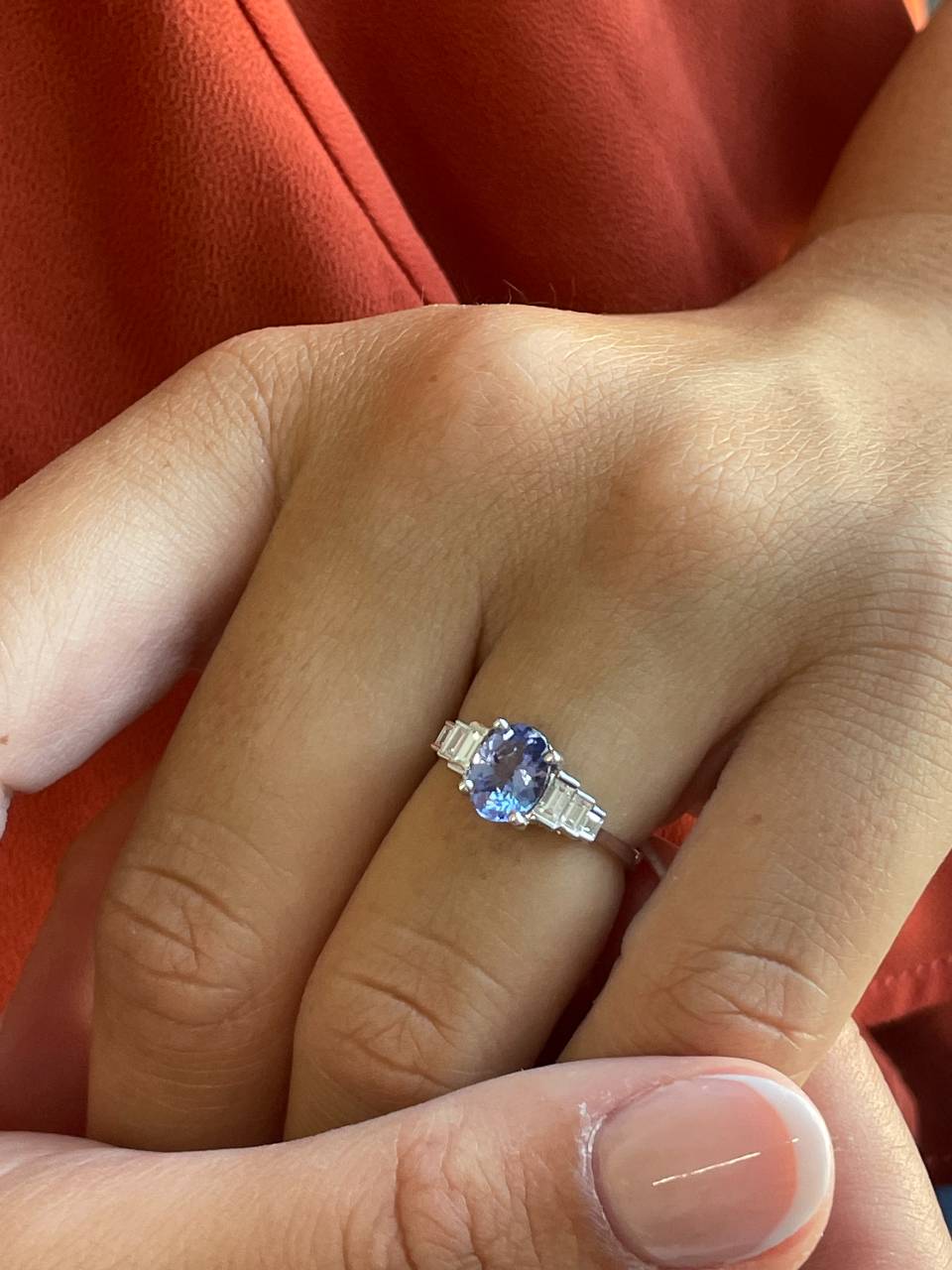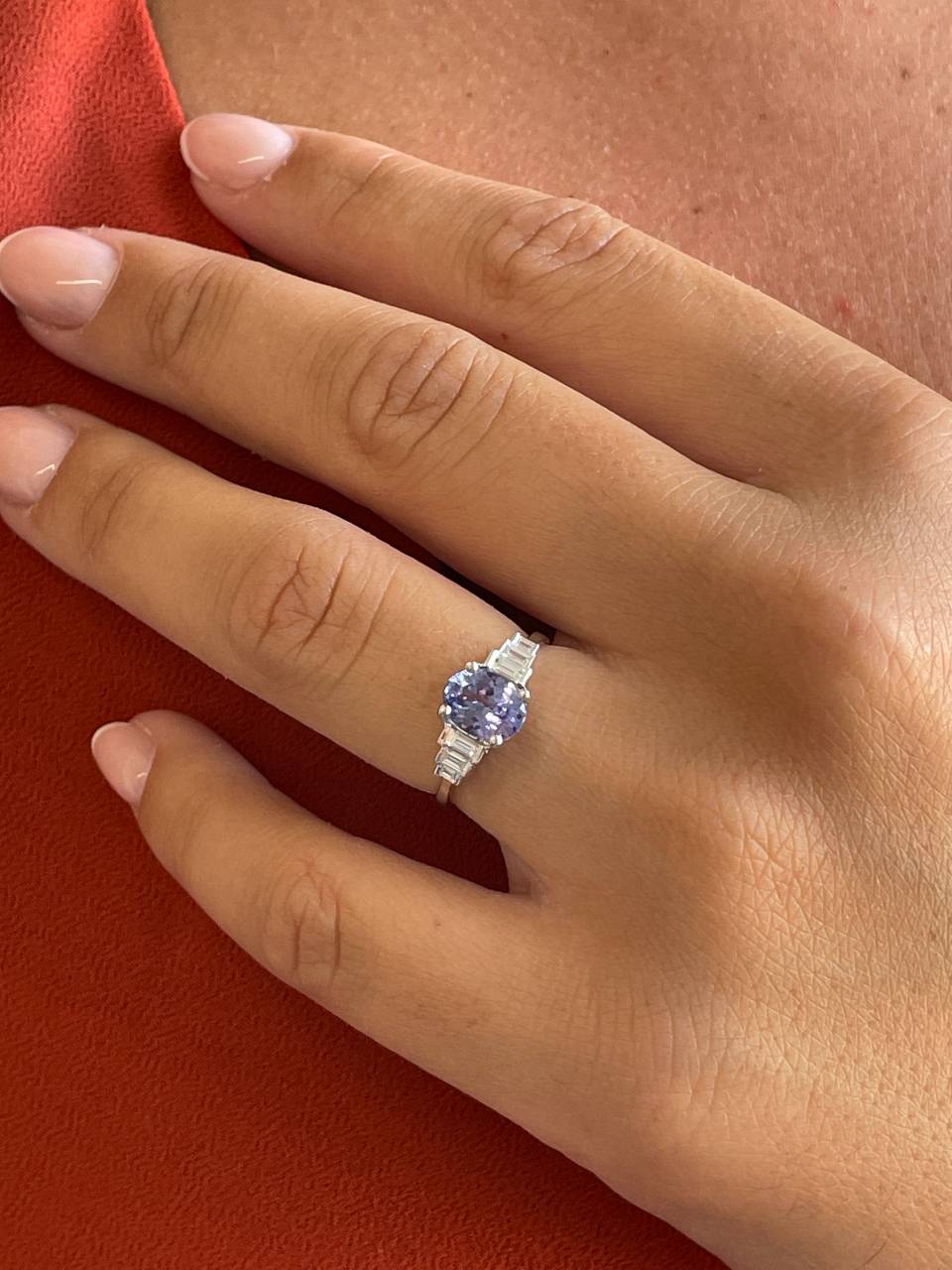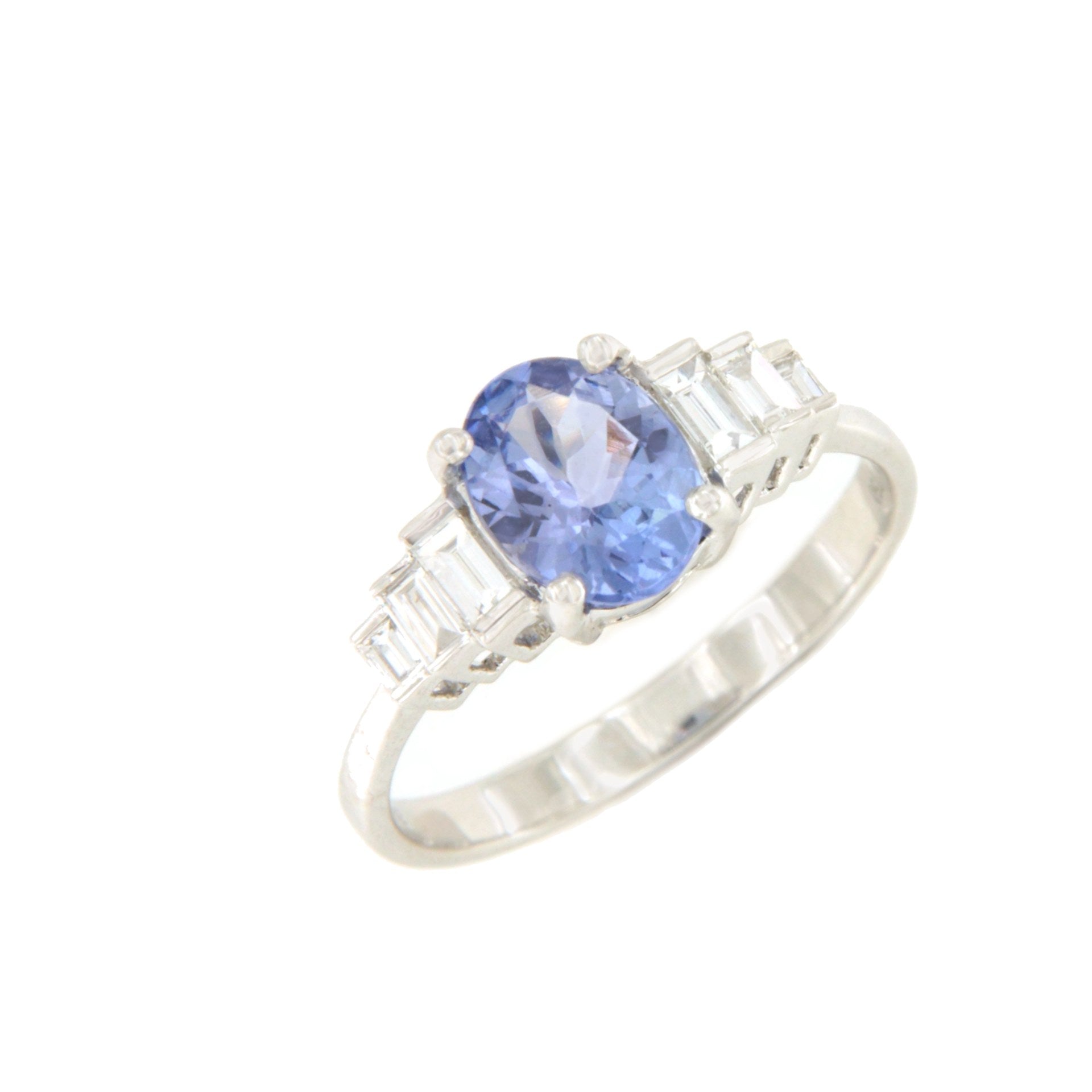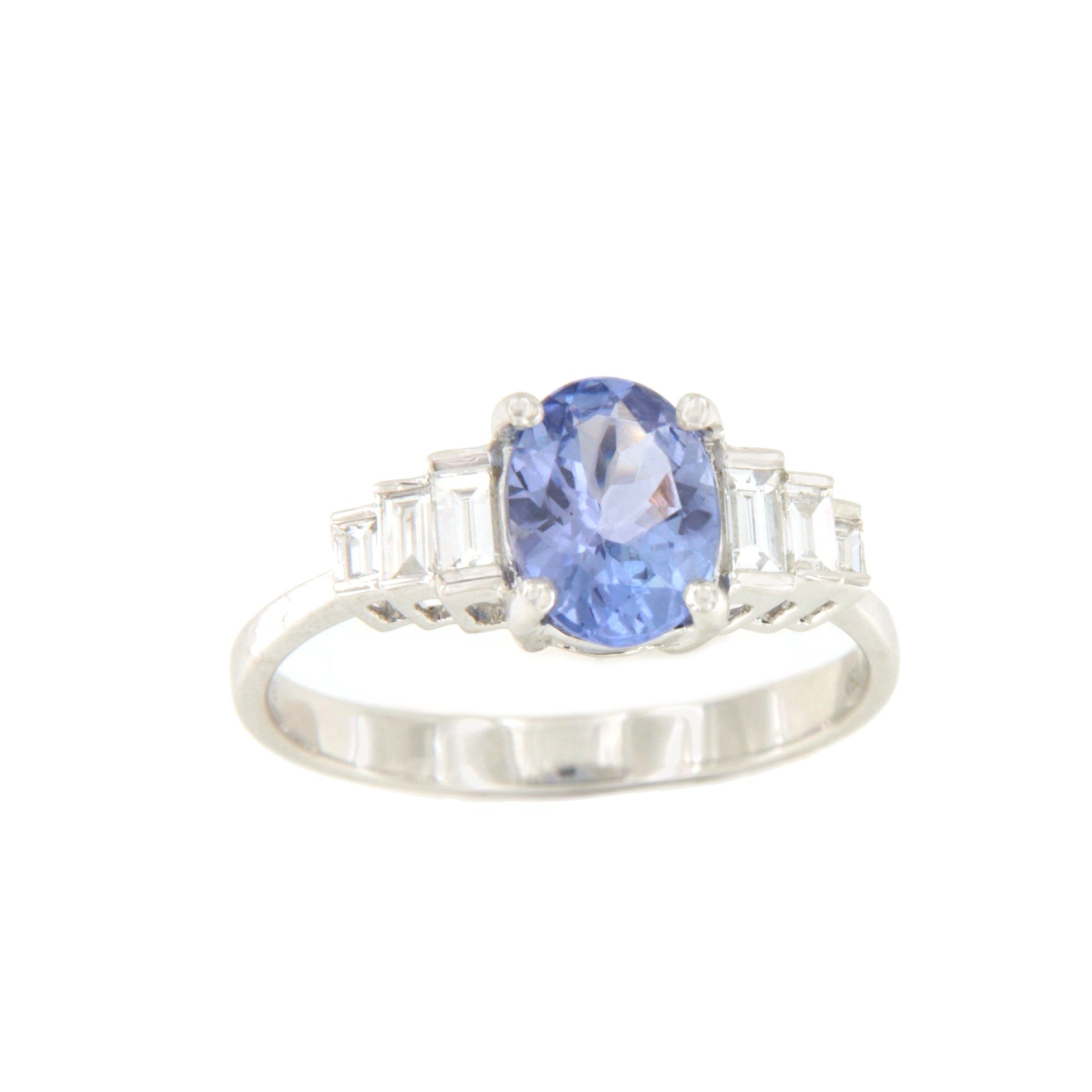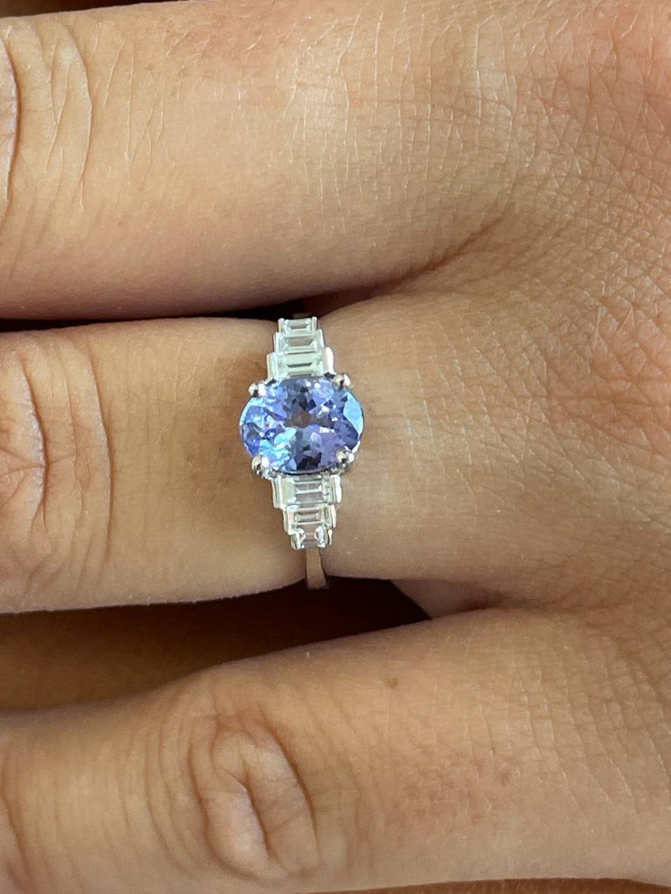 Precious gem: 6 baguette cut diamonds ( 0.24 carats) and 1 oval cut tanzanite (1.14 carats).