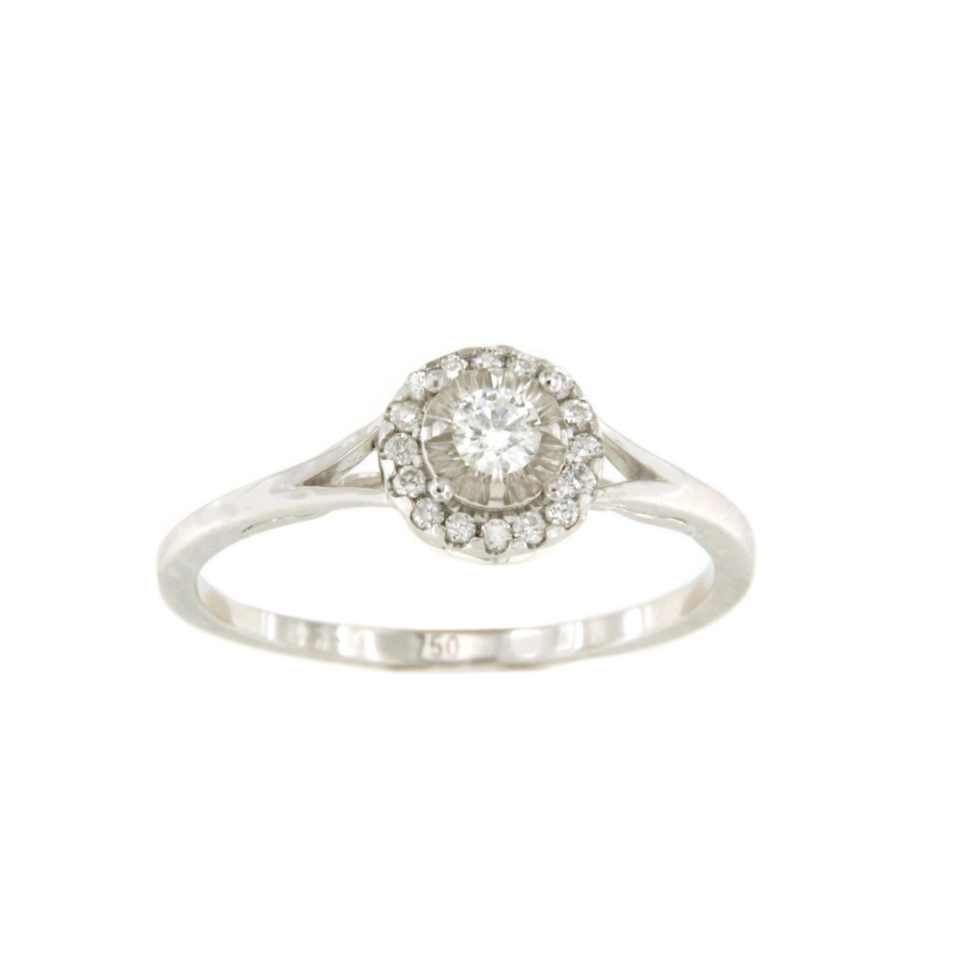 QUIMPER solitaire ring surrounded by a brilliant-cut diamond in 18k white gold.