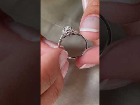 QUIMPER is a very charming solitaire ring, surrounded by a brilliant-cut diamond, with the center set in four prongs and a diamond bezel. It is crafted in 18-karat white gold. A beautiful choice for an engagement ring.