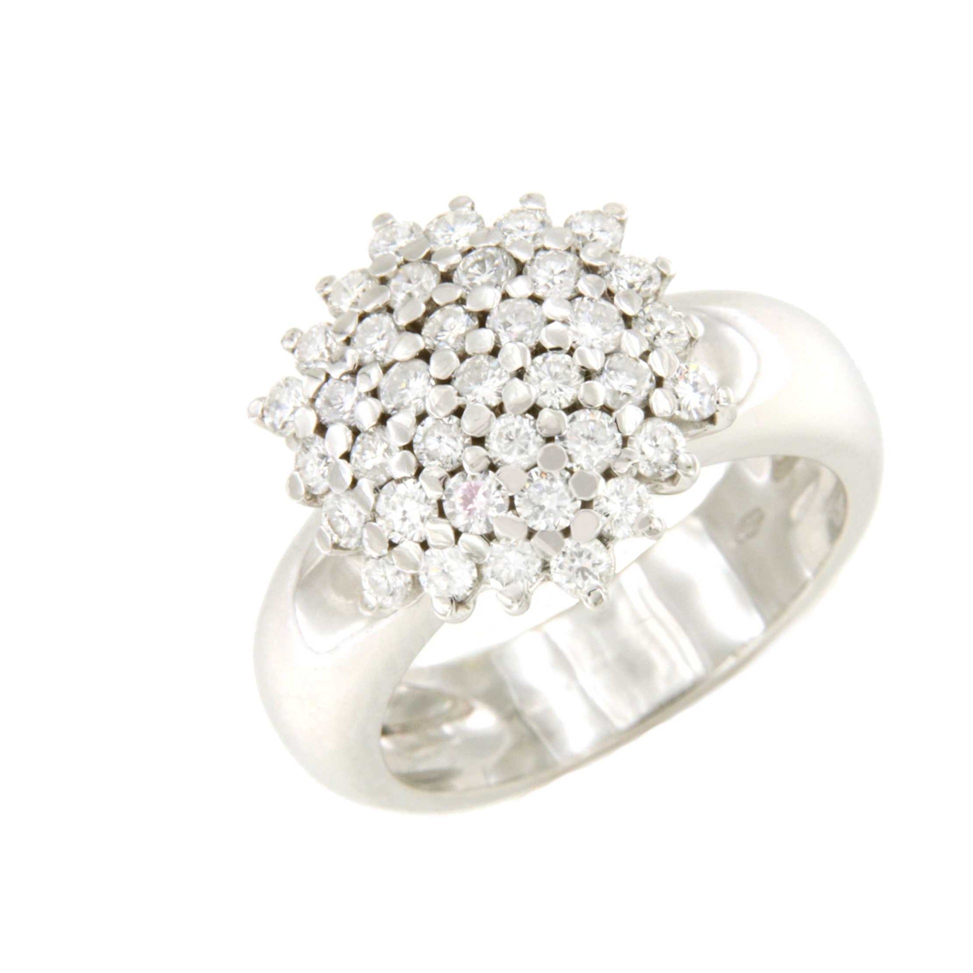 ROZAS is a ring with a central rosette set with brilliant claws and made of 18-karat white gold.